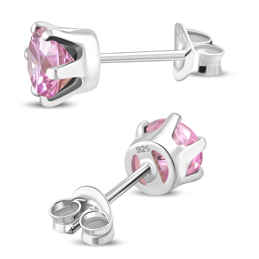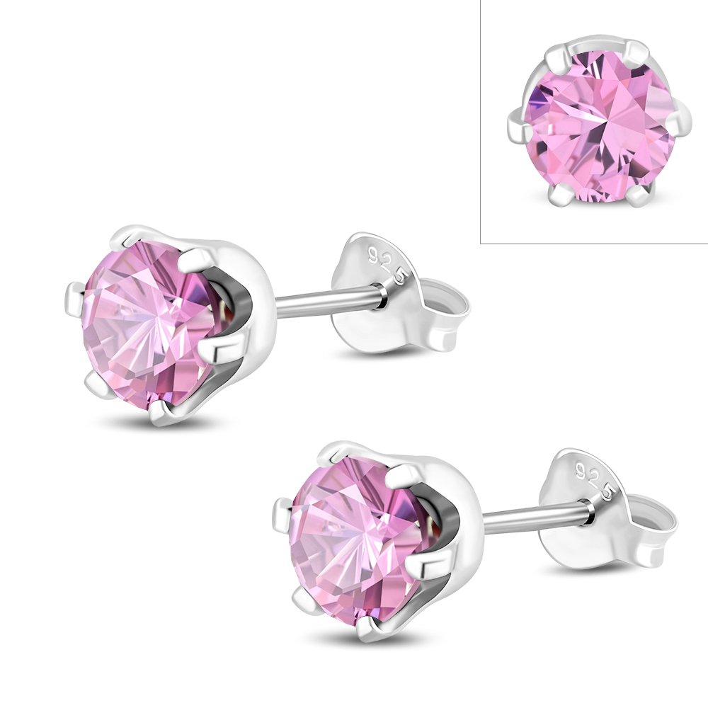 Theme: Round Prong-Set Rose Pink CZ Sterling Silver Stud Earrings