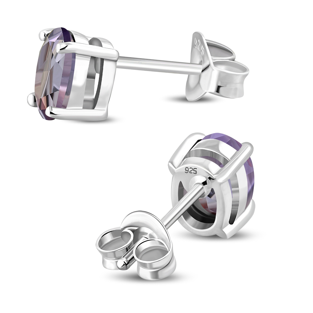 Theme: Oval Prong-Set Amethyst Sterling Silver Stud Earrings