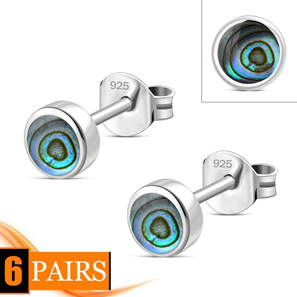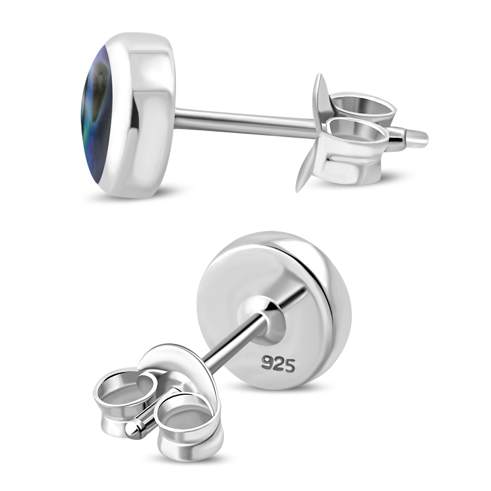 Theme: Round Abalone Sterling Silver Stud Earrings.