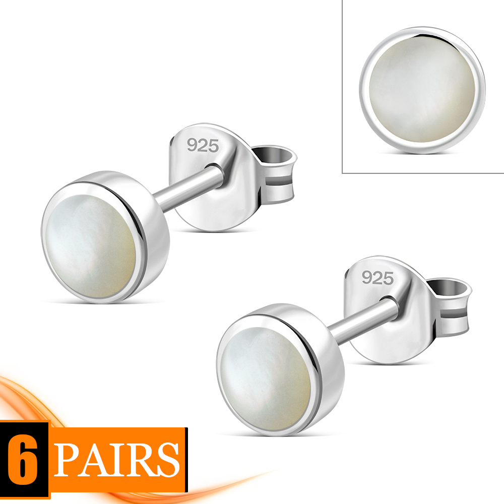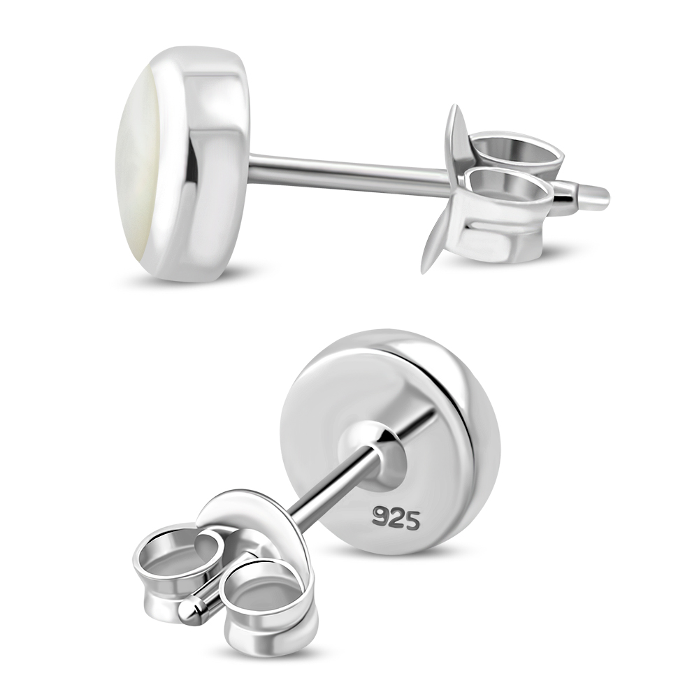 Theme: Round Mother of Pearl Silver Stud Earrings.