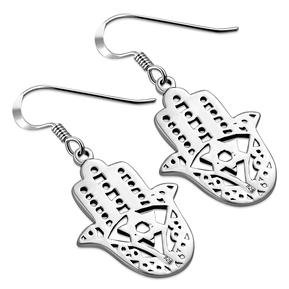 Theme: Hand of Fatima Hamsa Star Of David Sterling Silver Dangle Drop Hook Earrings