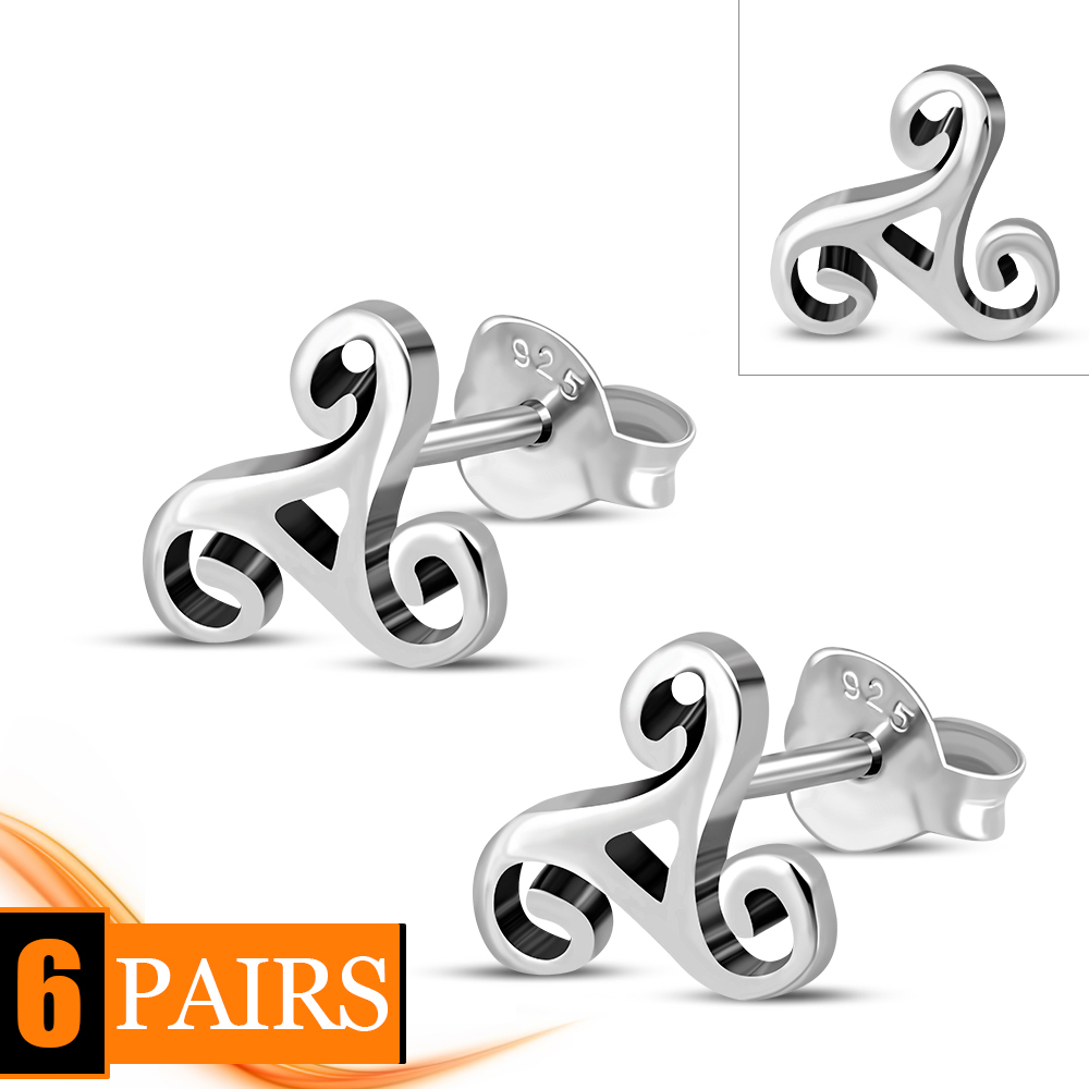 Theme: Triskelion / Triskele Triple Spiral Stud Silver Earrings.