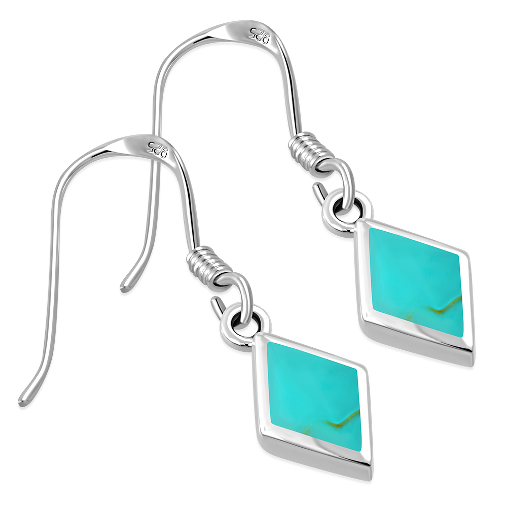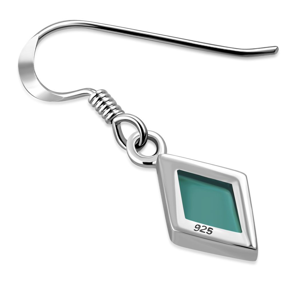 Theme: Turquoise Rhombus Shape Silver Earrings.