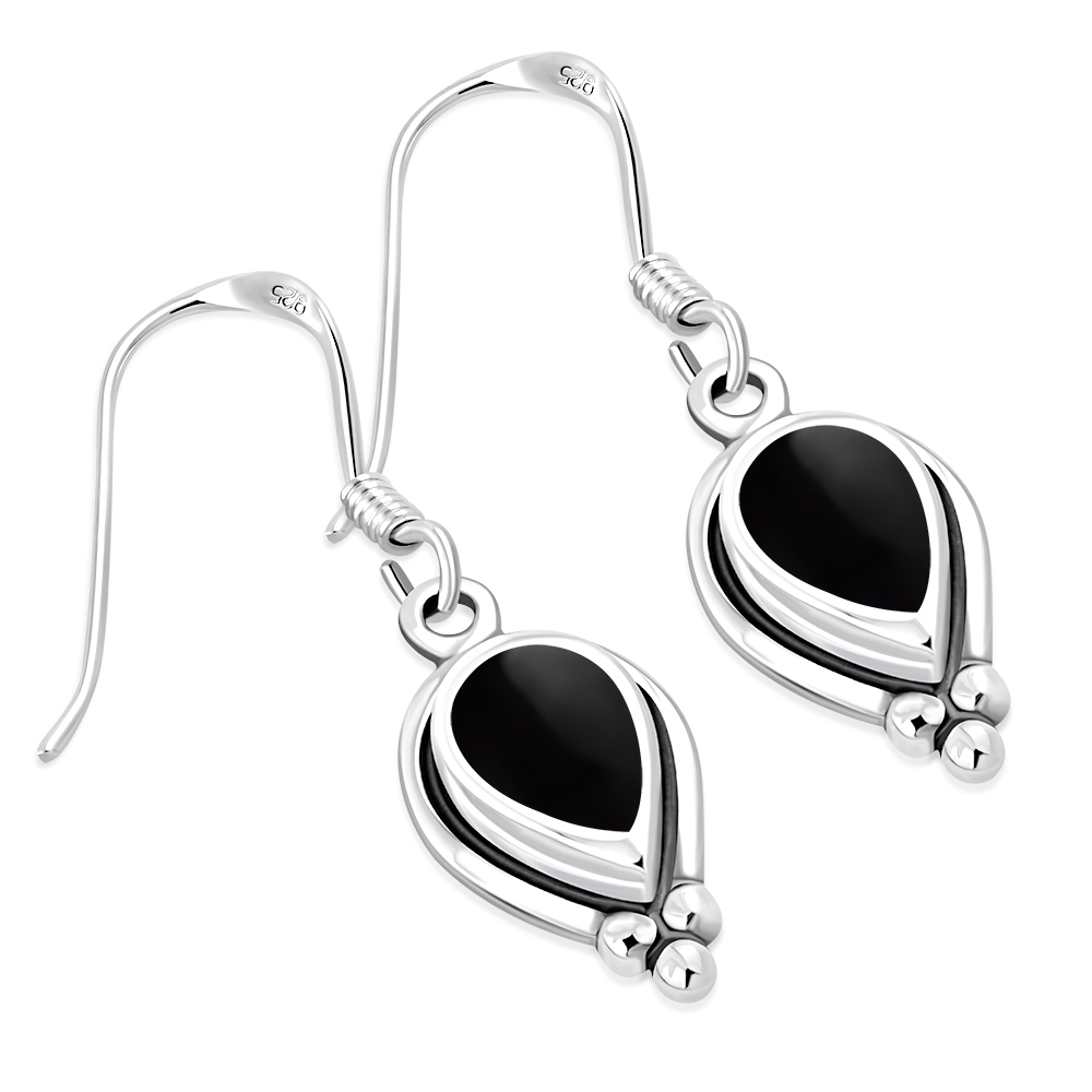 Black Onyx Pear Shaped Ethnic Style Drop Hook Earrings