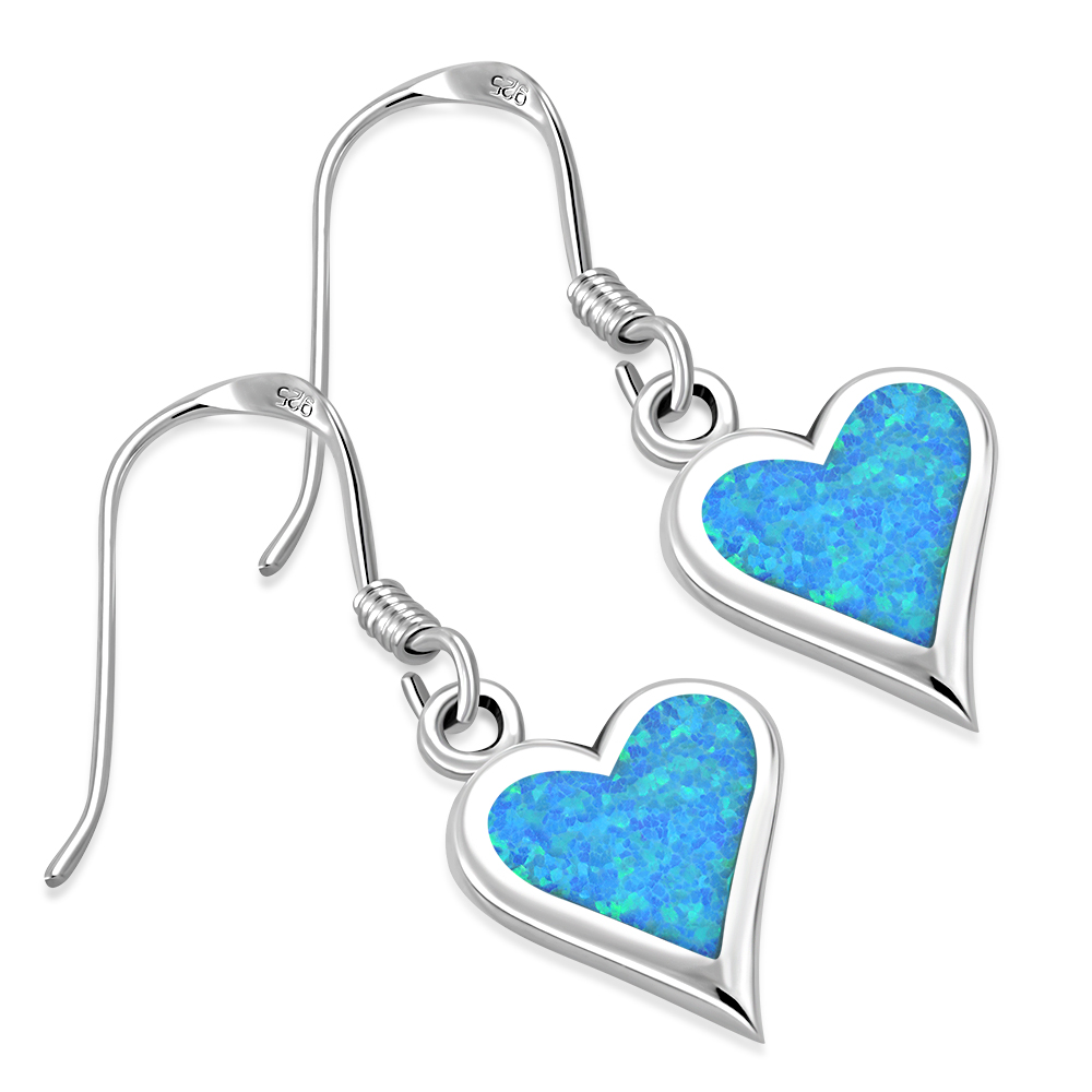 Theme: Synthetic Opal Heart Sterling Silver Earrings.