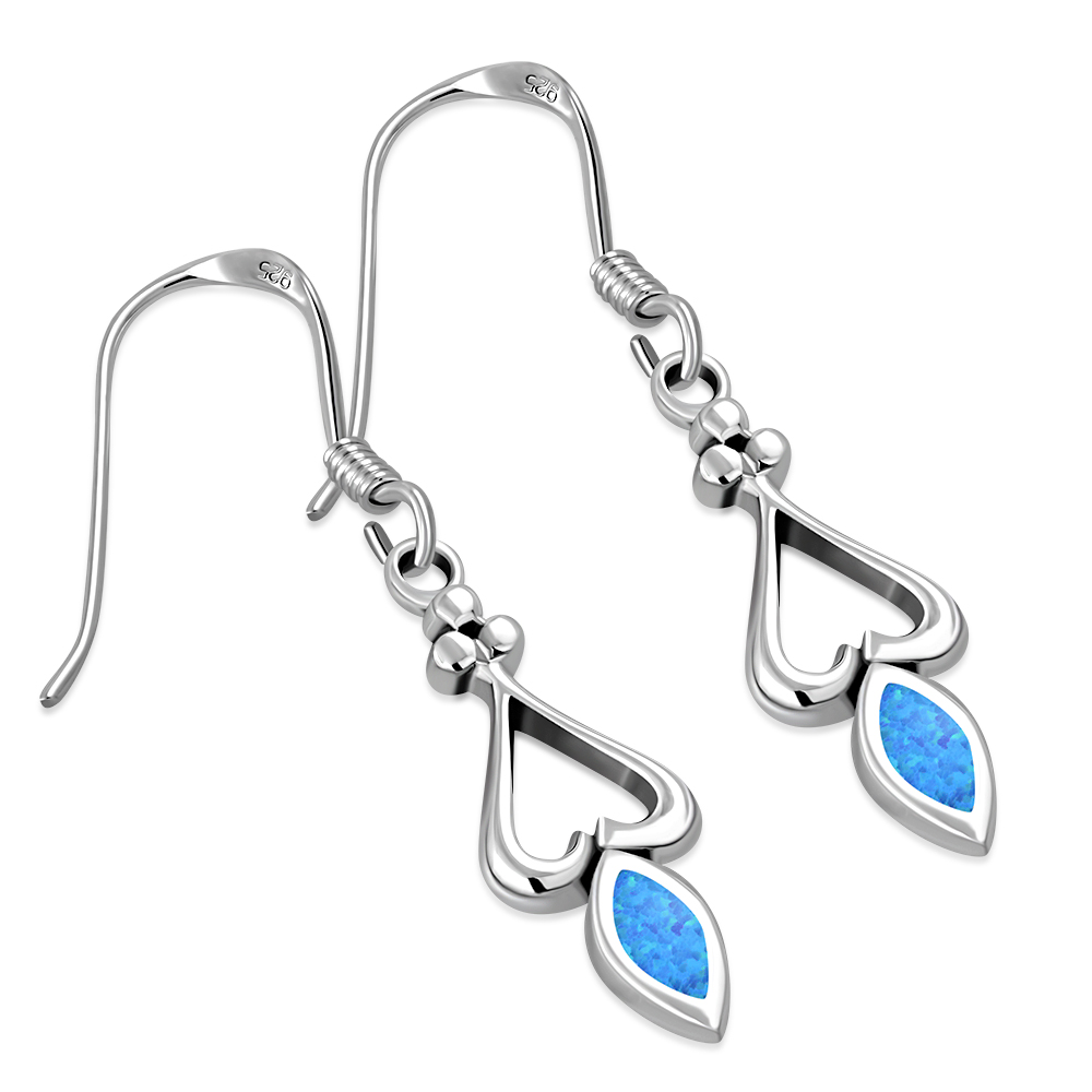 Theme: Synthetic Opal Sterling Silver Heart Earrings.