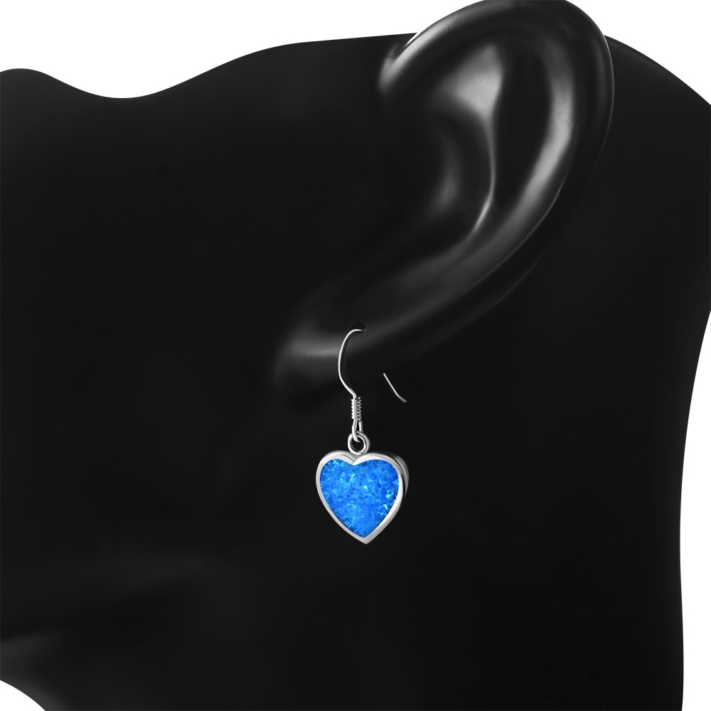 Theme: Synthetic Opal Heart Sterling Silver Earrings.