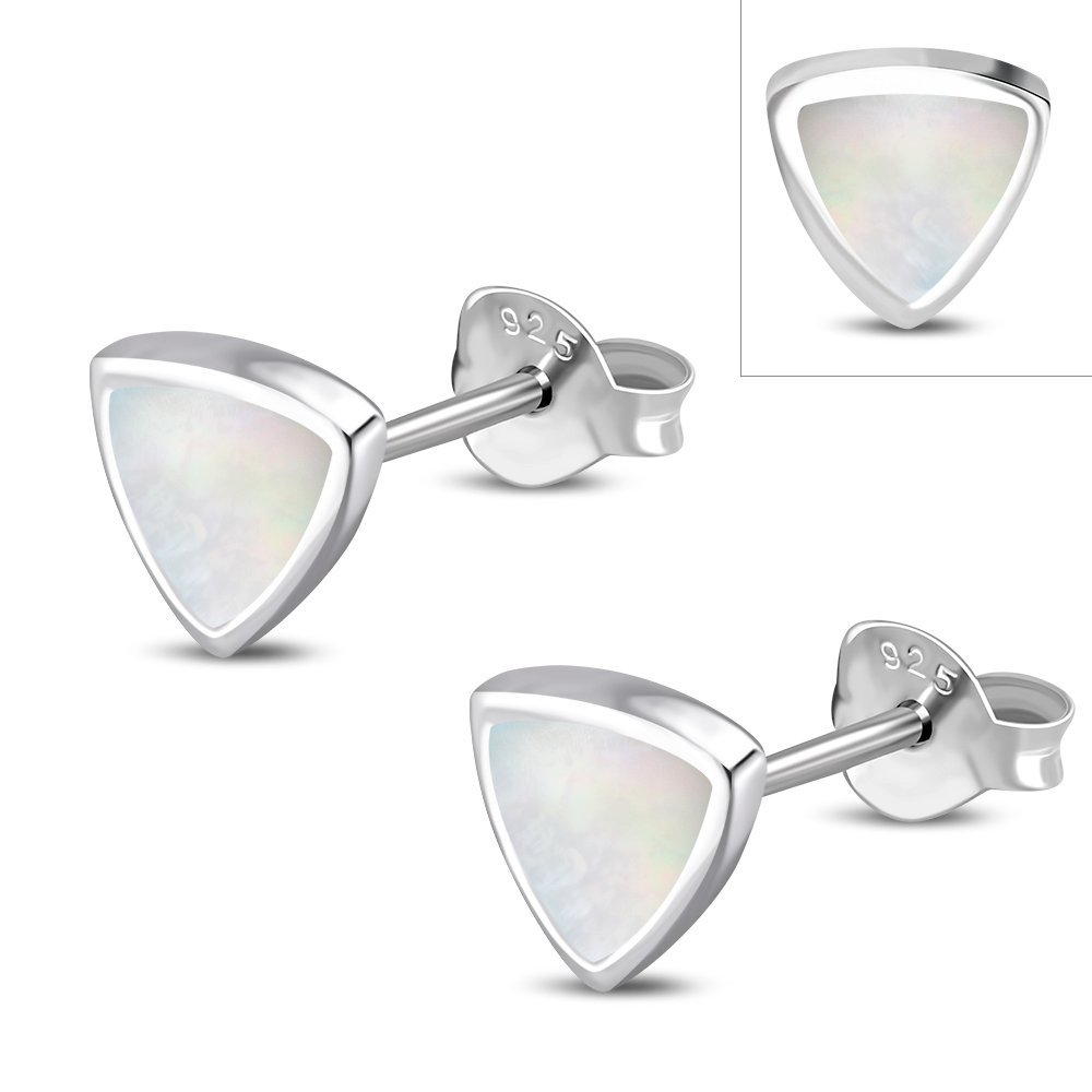 Theme: Mother of Pearl Triangle Stud Silver Earrings.