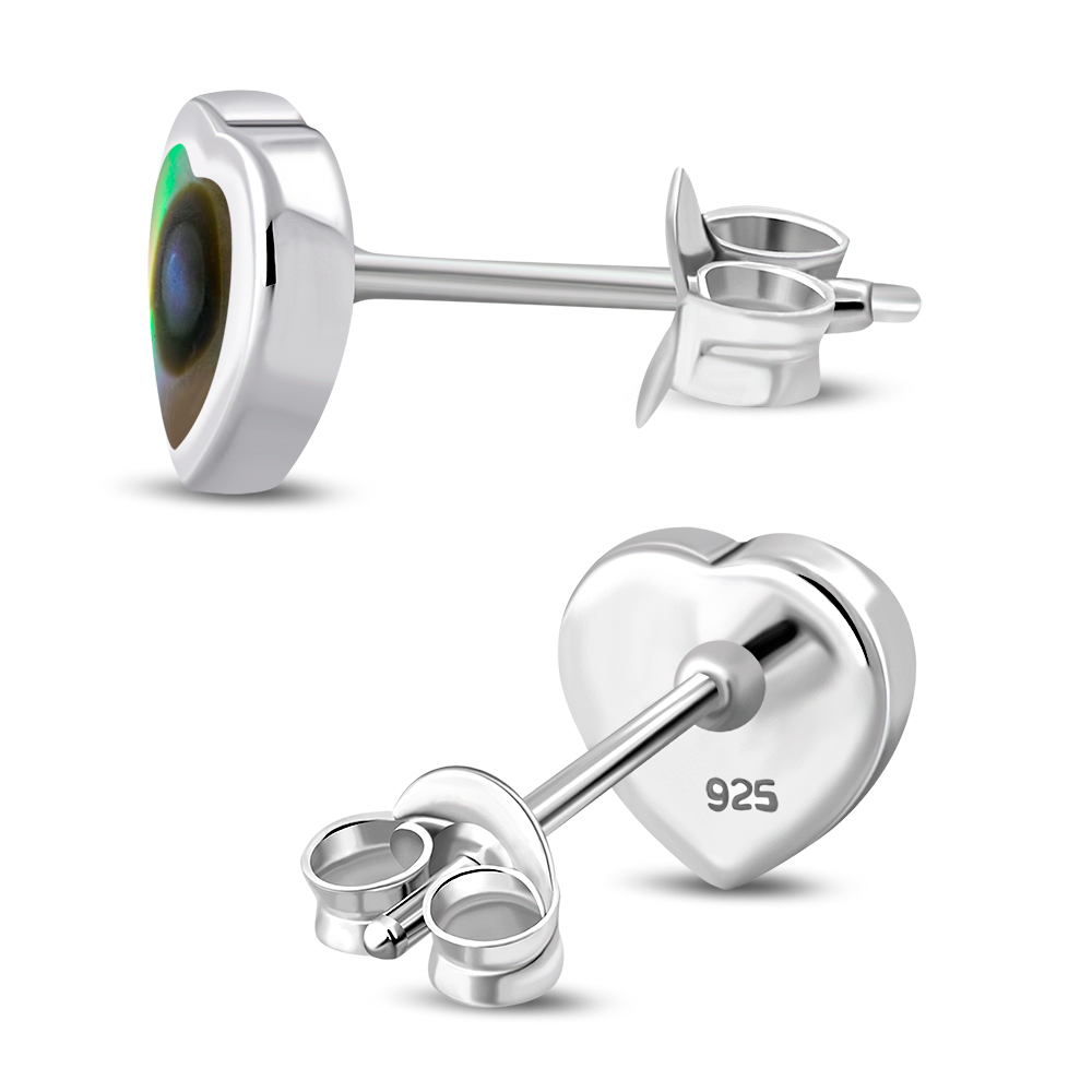 Theme: Abalone Shell Heart Silver Stud Earrings.
