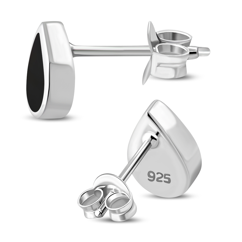 Theme: Black Onyx Drop Silver Stud Earrings.