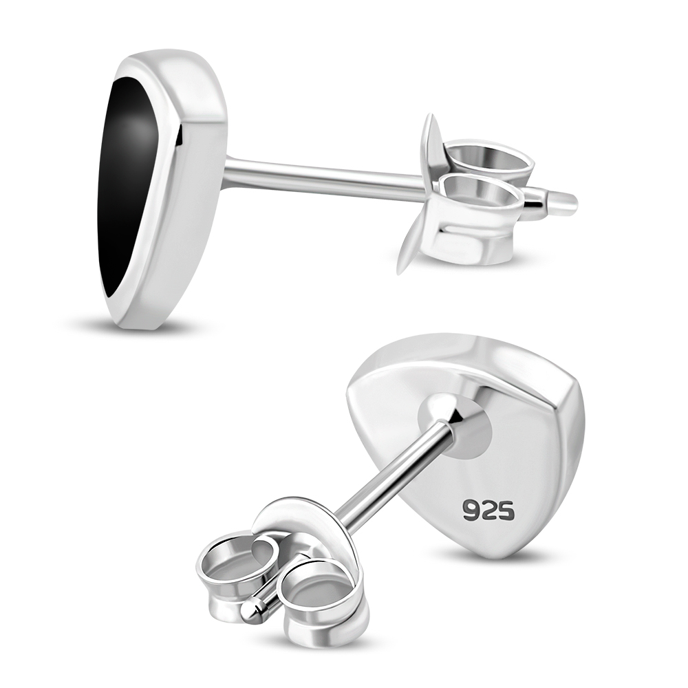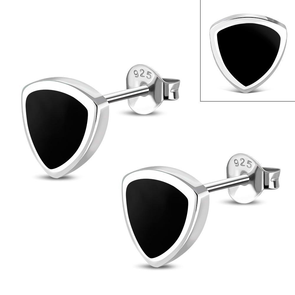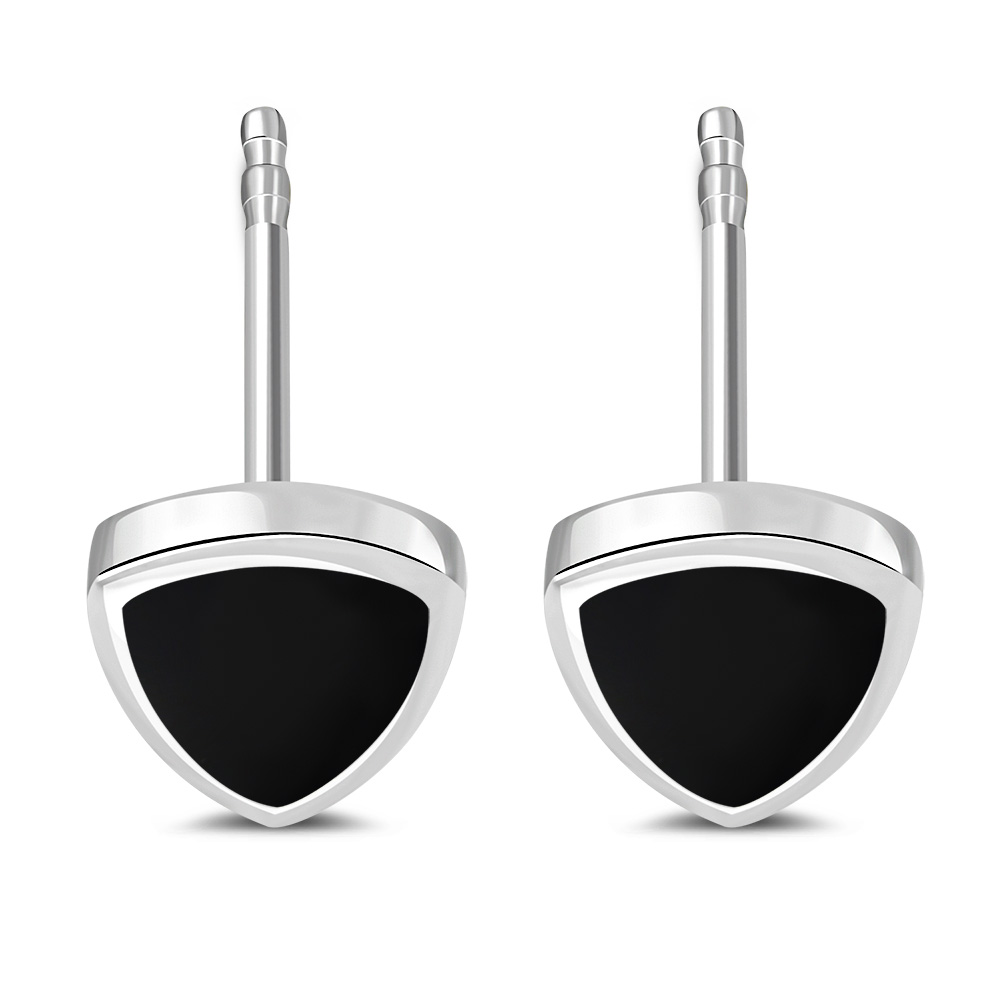 Theme: Black Onyx Reuleaux Triangle Silver Stud Earrings.