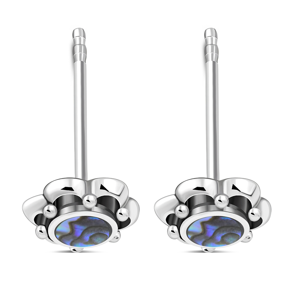 Abalone Shell Flower Stud Silver Earrings