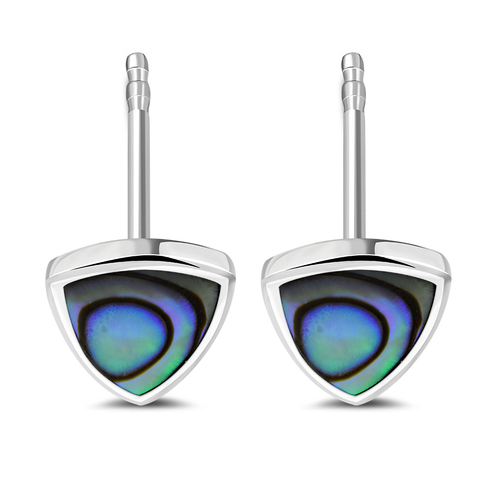 Theme: Abalone Shell Triangle Stud Silver Earrings.