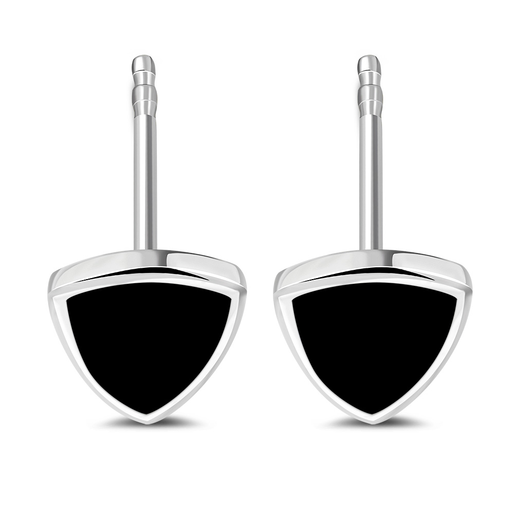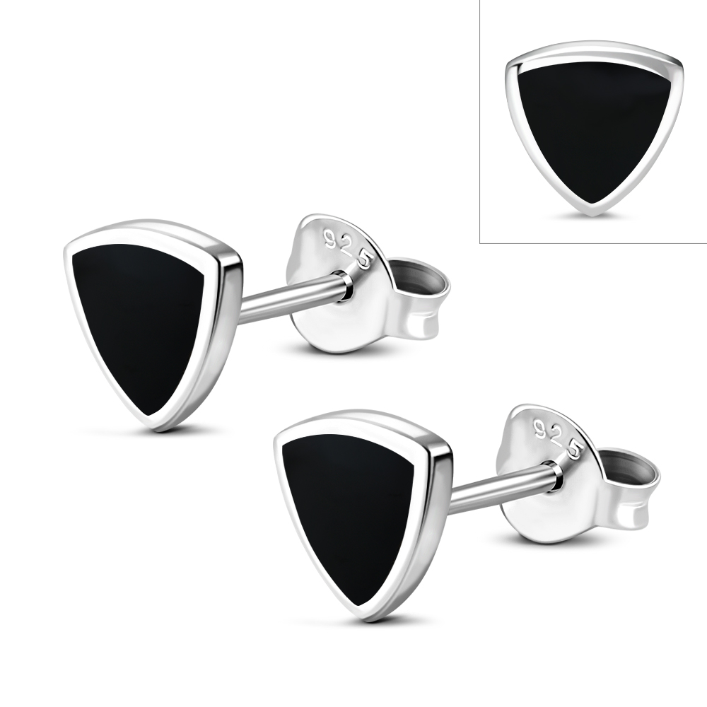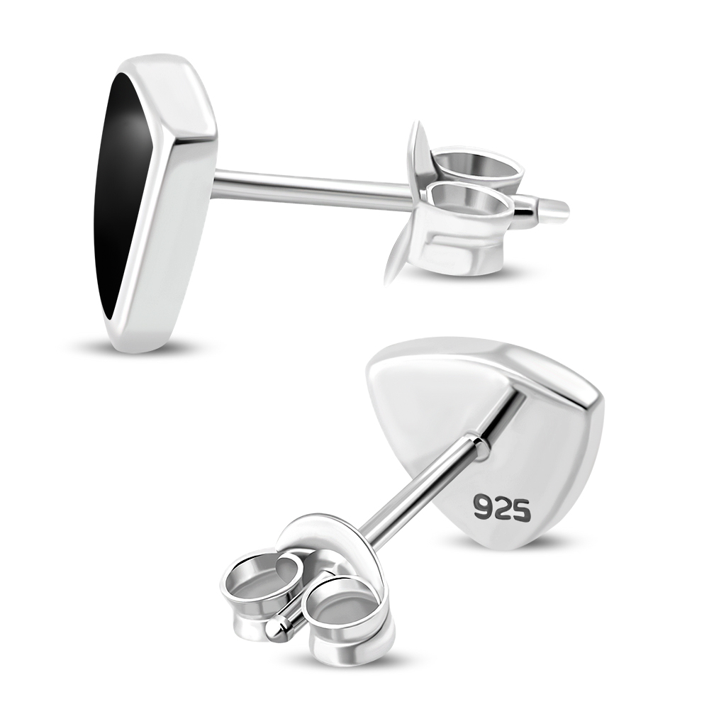 Theme: Black Onyx Triangle Stud Silver Earrings.