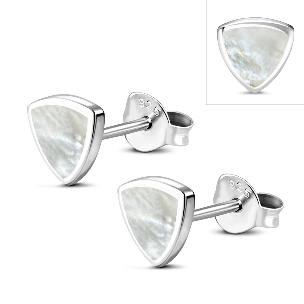 Theme: Mother of Pearl Triangle Stud Silver Earrings.