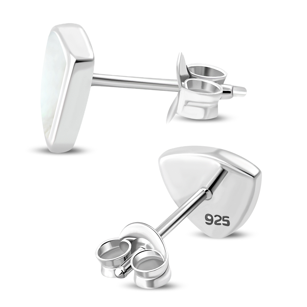 Mother of Pearl Triangle Stud Silver Earrings