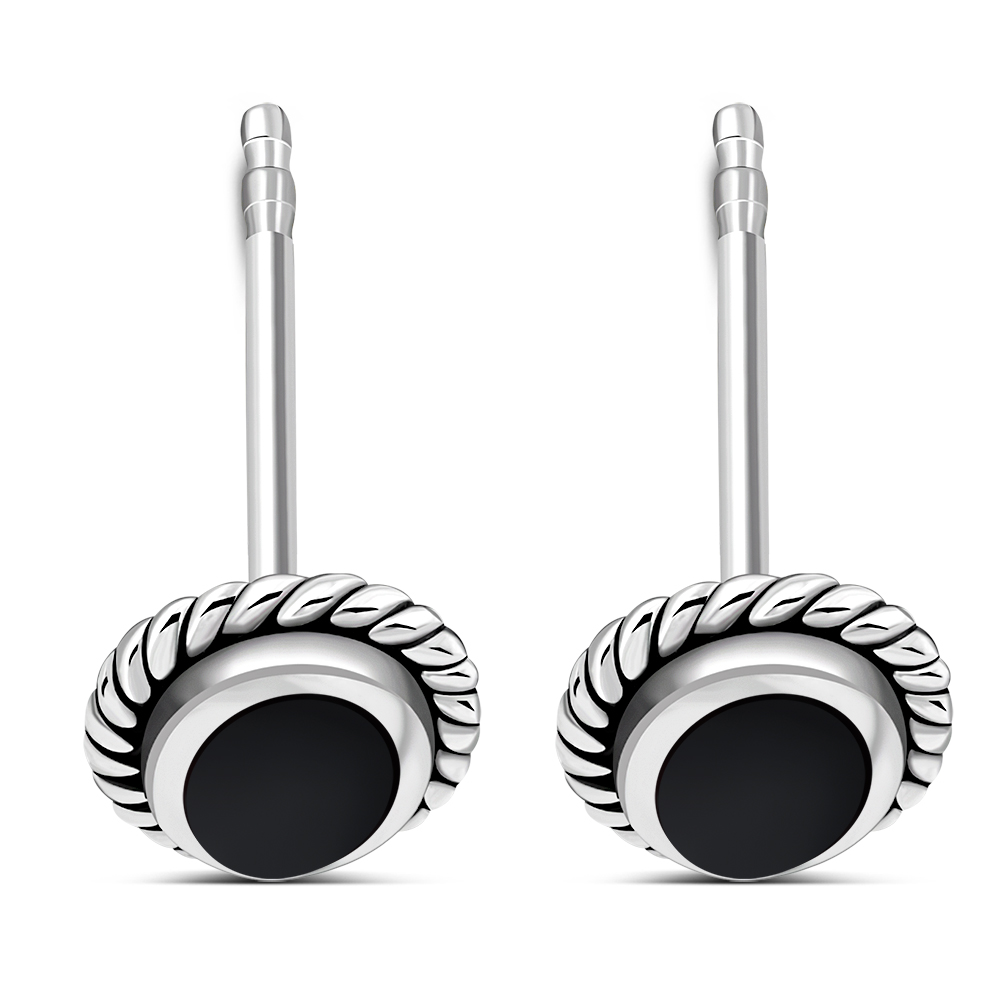 Oval Black Onyx Stud Silver Earrings