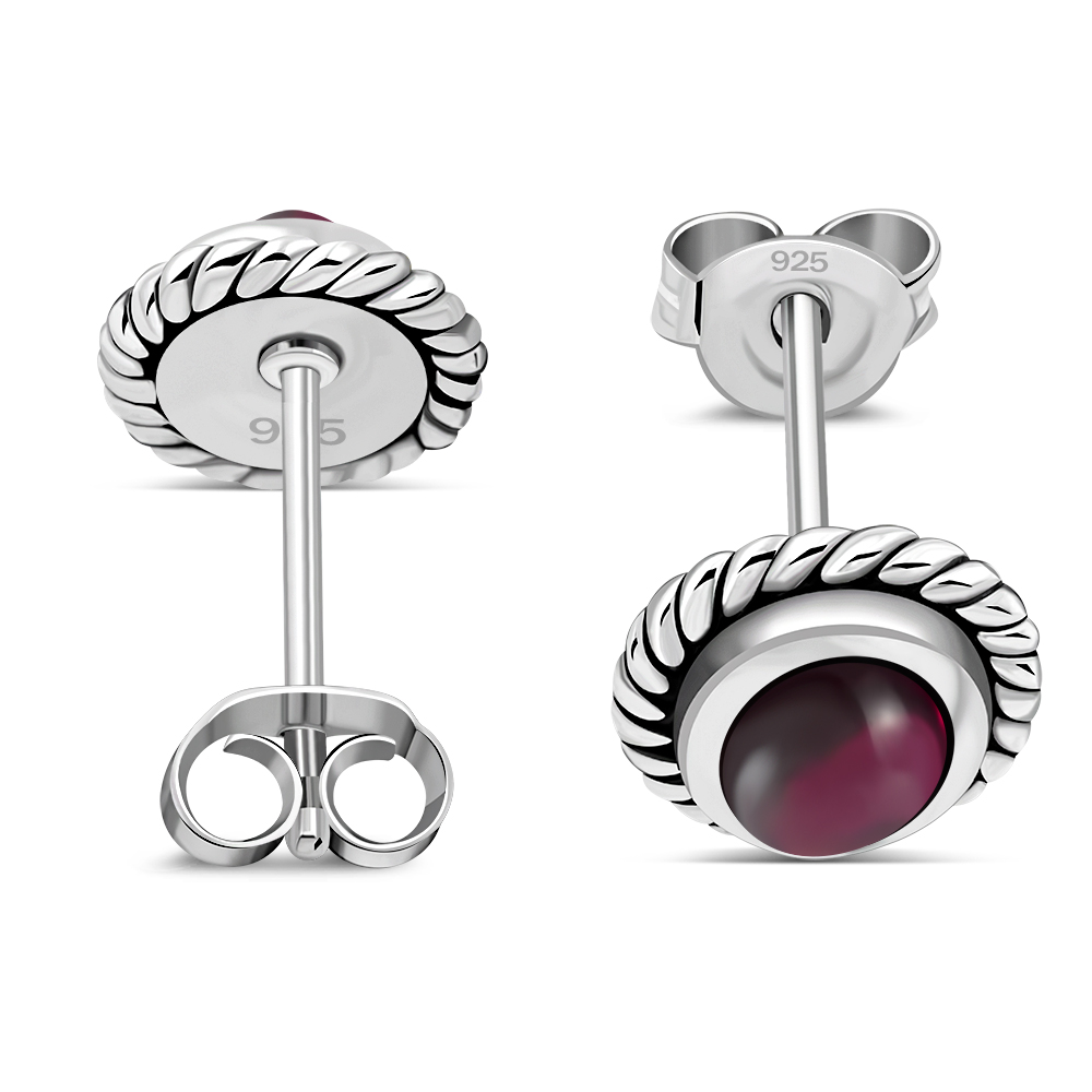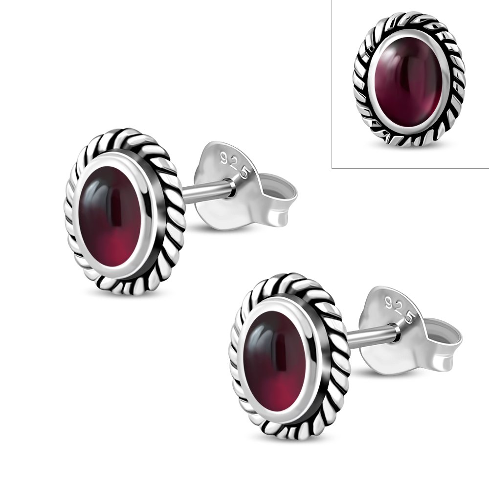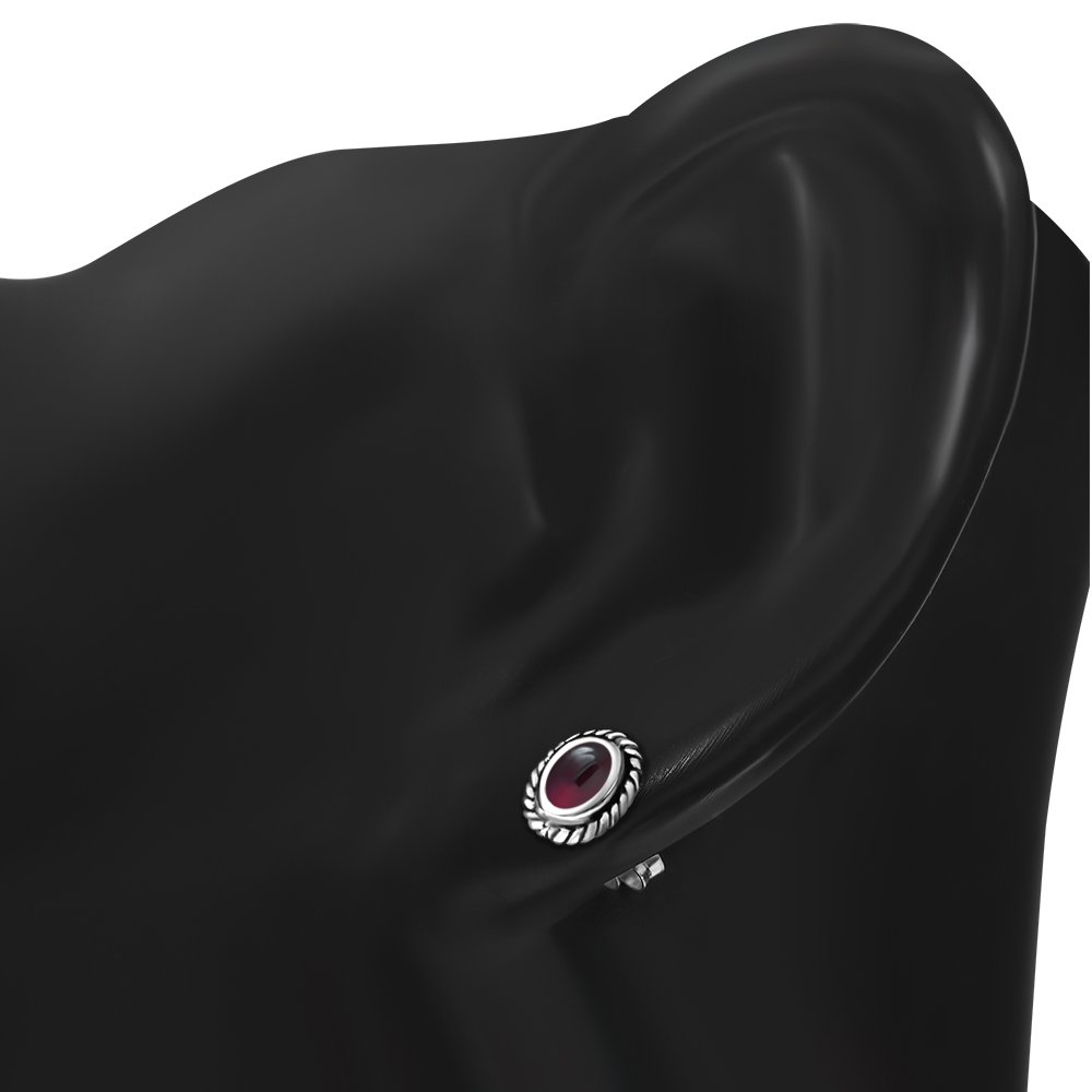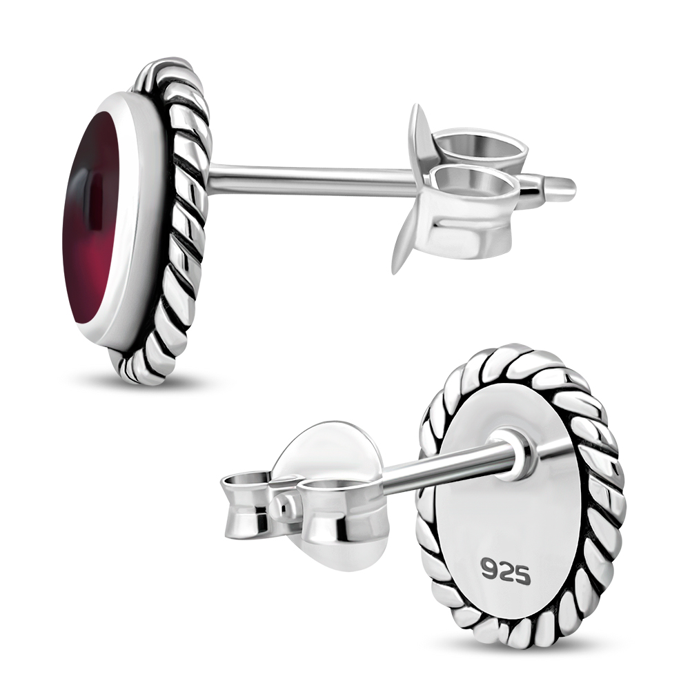 Oval Garnet Stone Stud Silver Earrings
