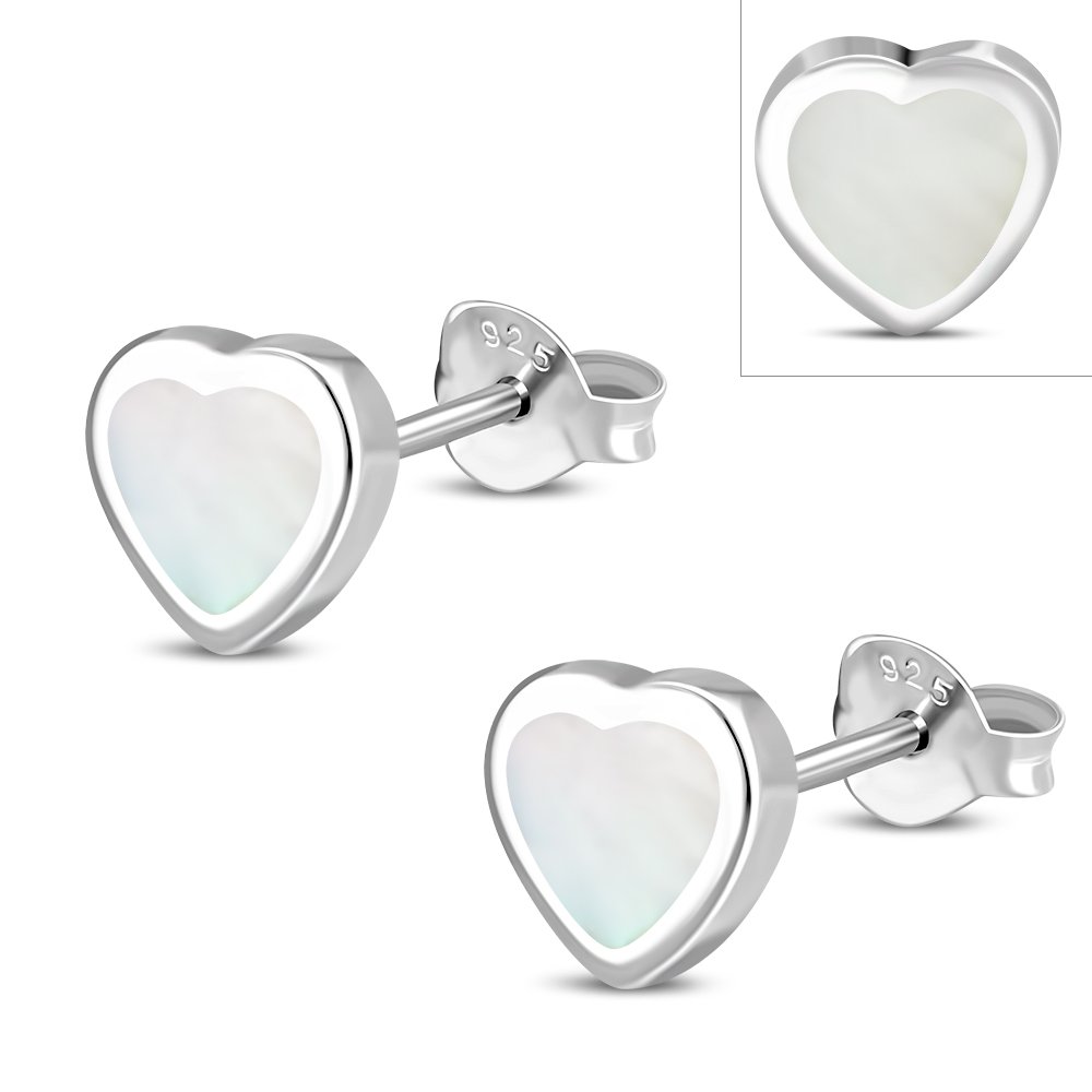 Theme: Mother of Pearl Heart Silver Stud Earrings.