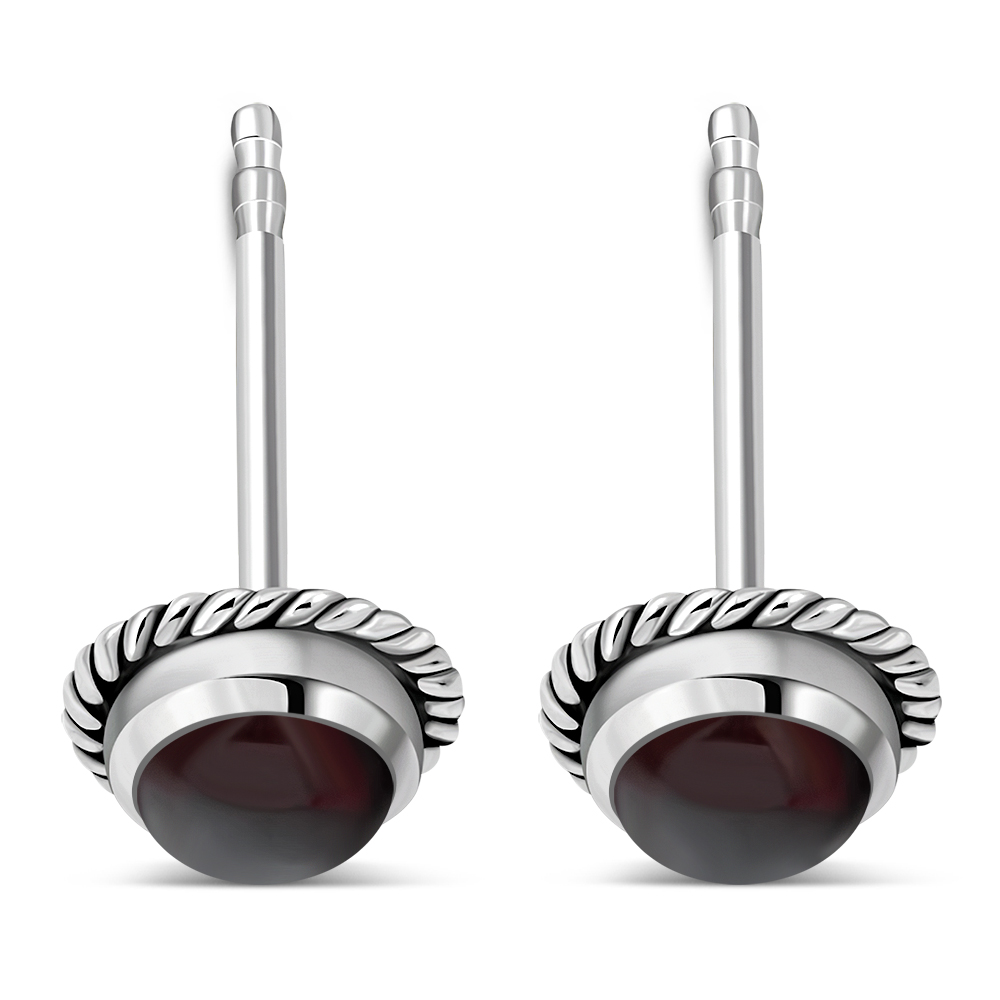 Theme: Round Garnet Stone Stud Silver Earrings.