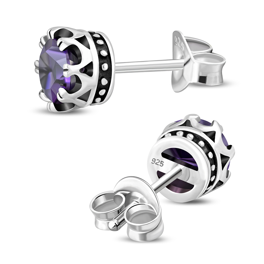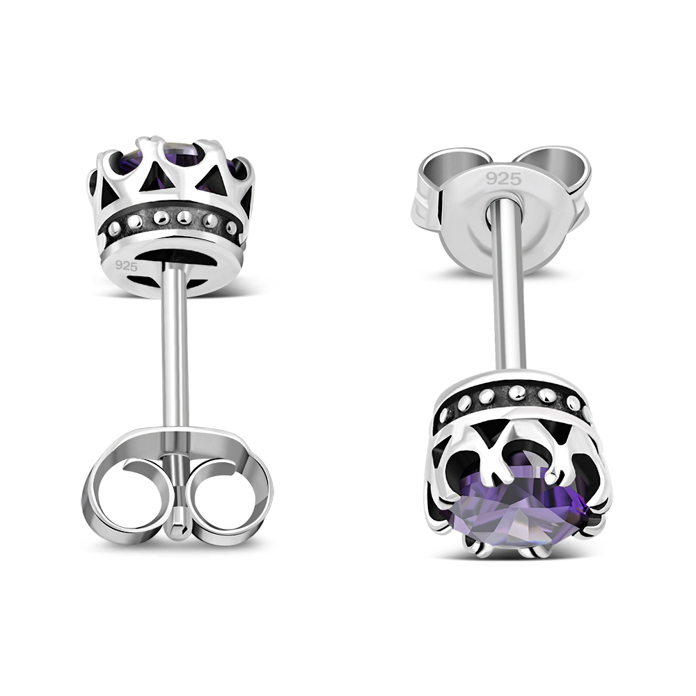 Theme: Vintage Royal Crown Celtic Amethyst CZ Sterling Silver Stud Earrings
