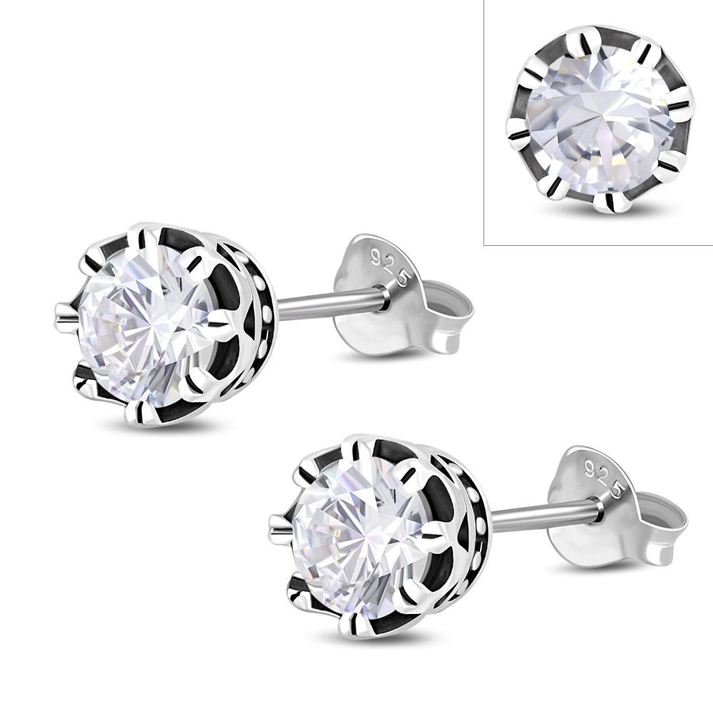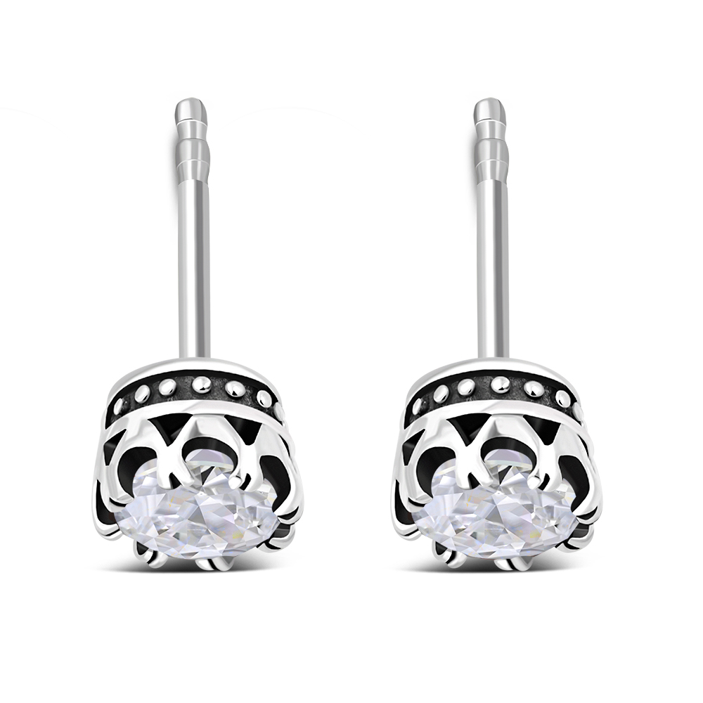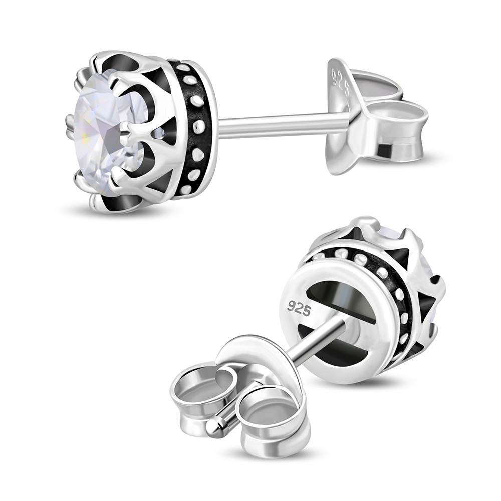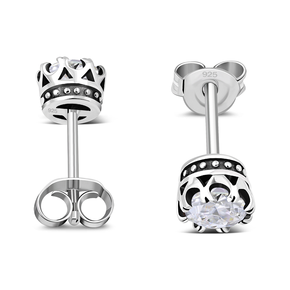 Theme: Vintage Royal Crown Celtic Clear CZ Sterling Silver Stud Earrings