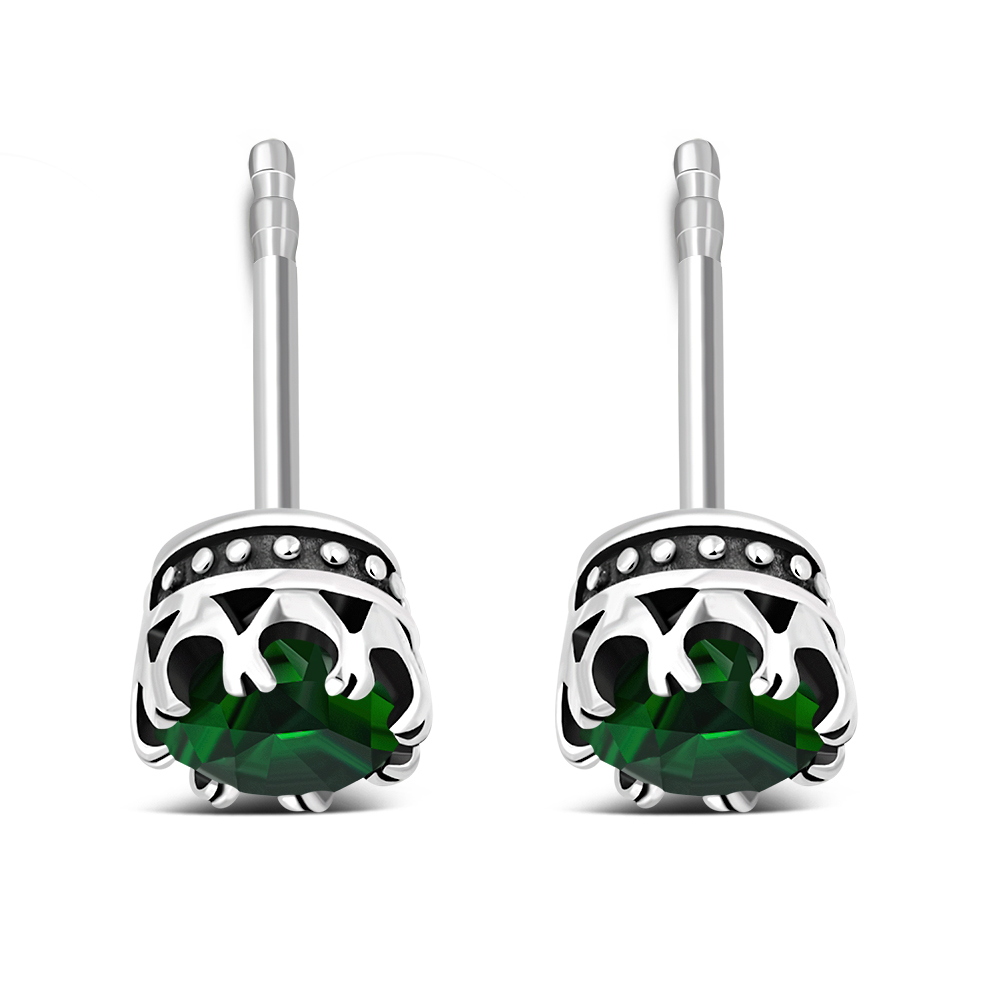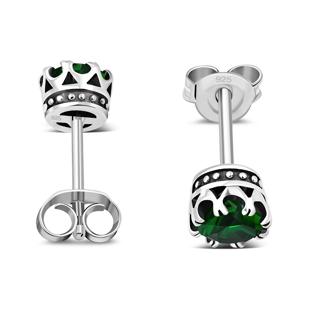 Theme: Vintage Royal Crown Celtic Emerald Green CZ Sterling Silver Stud Earrings