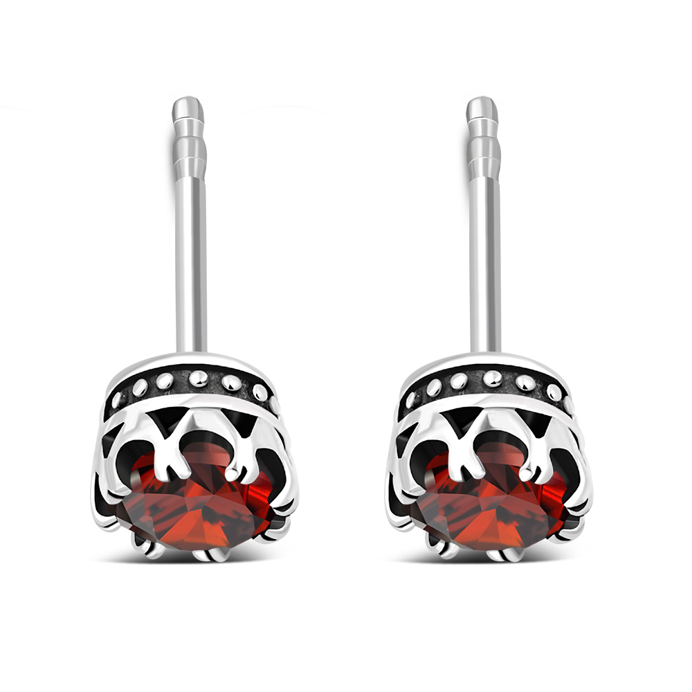 Theme: Vintage Royal Crown Celtic Garnet CZ Sterling Silver Stud Earrings