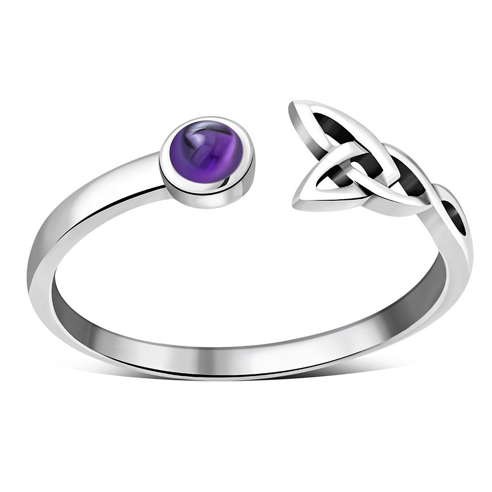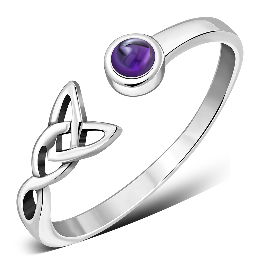 Theme: Amethyst Stone Trinity Knot Sterling Silver Open Ring.