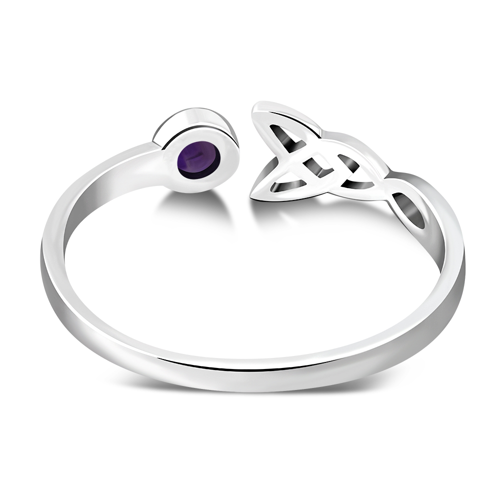 Amethyst Stone Trinity Knot Sterling Silver Open Ring