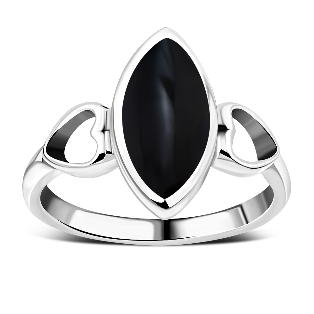 Black Onyx Love Heart 925 Sterling Silver Ring