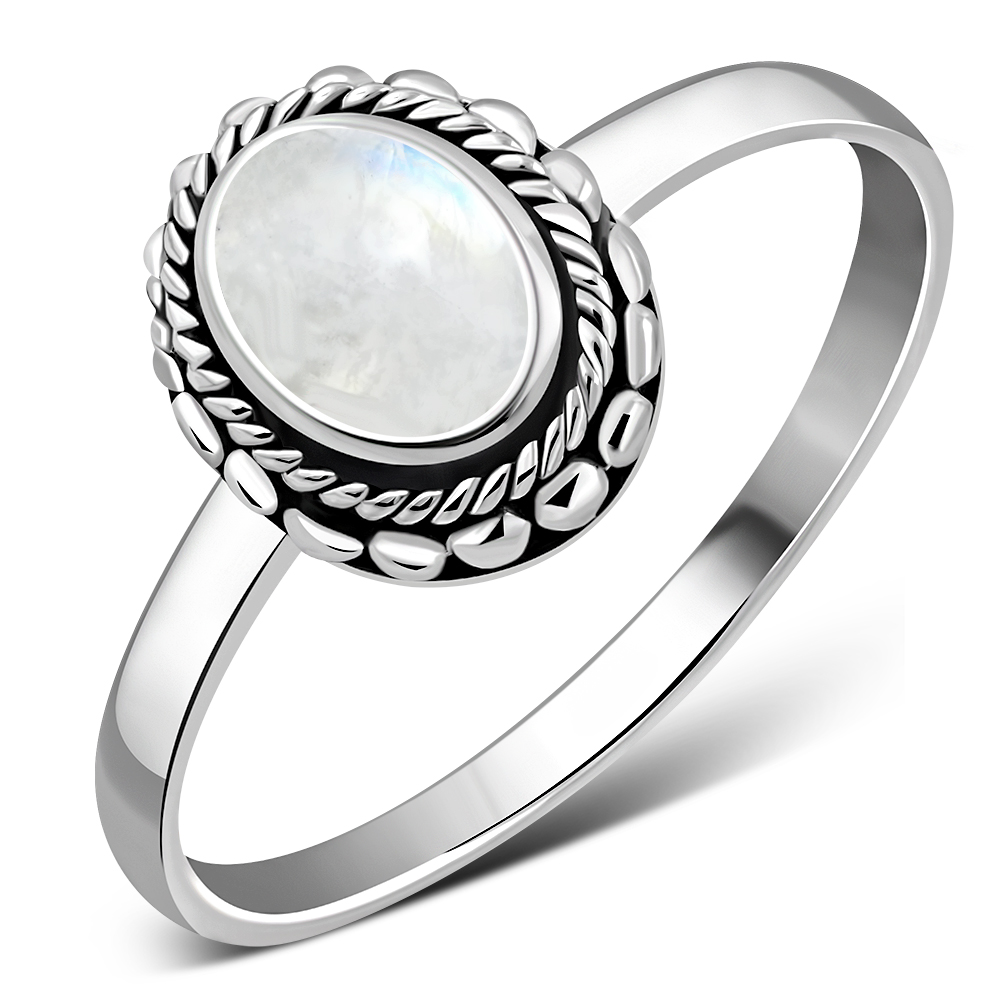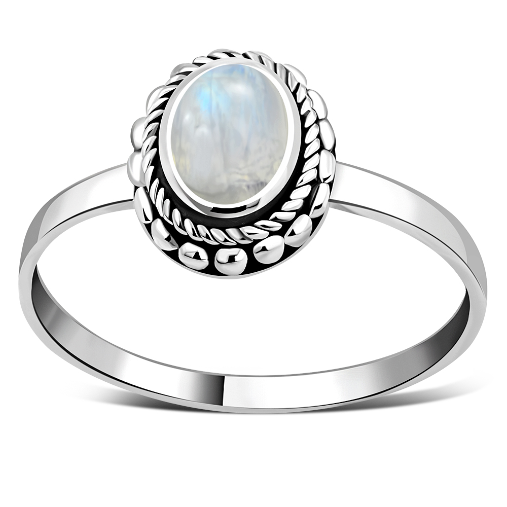 Ethnic Style Rainbow Moonstone Silver Ring.