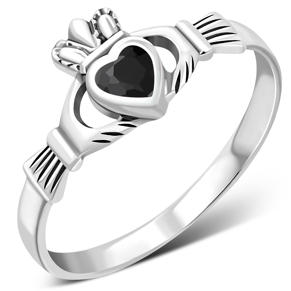 Faceted Black Onyx Claddagh Silver Ring, r546