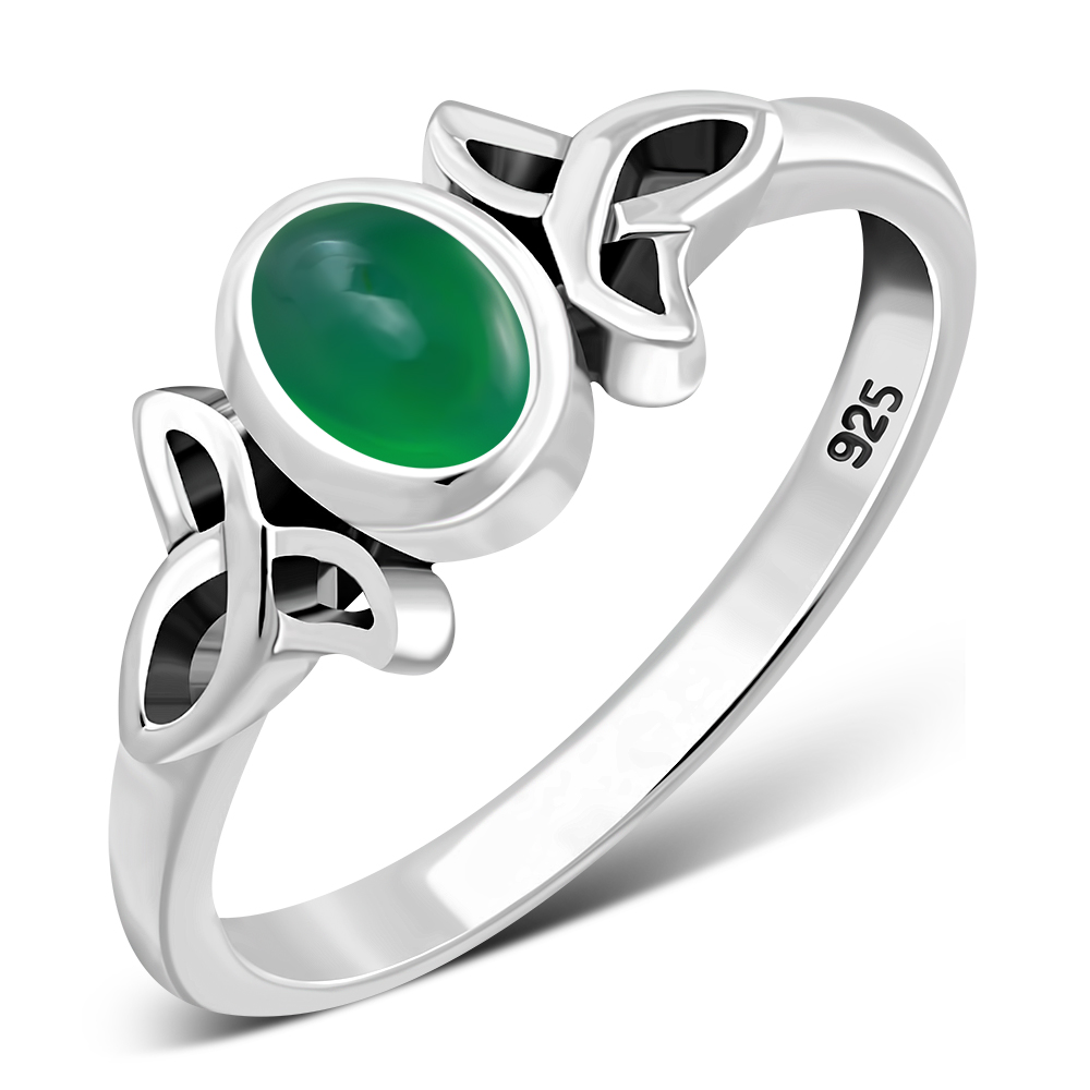 Theme: Green Agate Solid Sterling Silver Celtic Ring.