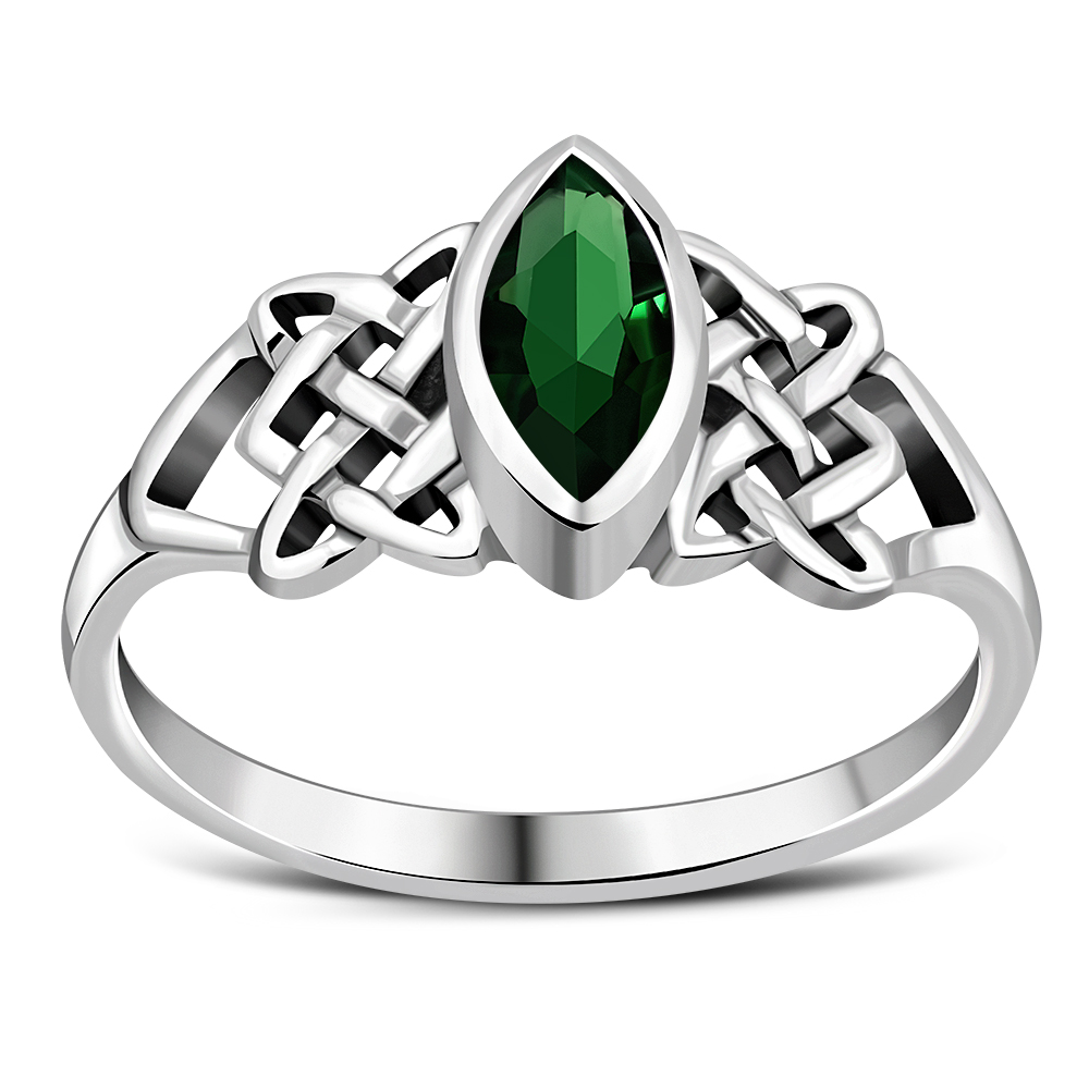 Green Cubic Zirconia Celtic Sterling Silver Ring