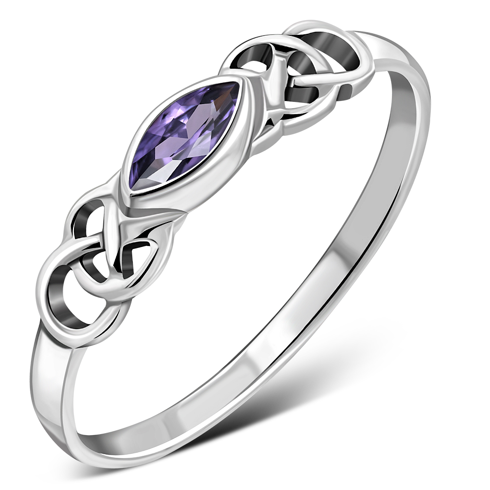 Marquise cut Delicate Amethyst Celtic Silver Ring.