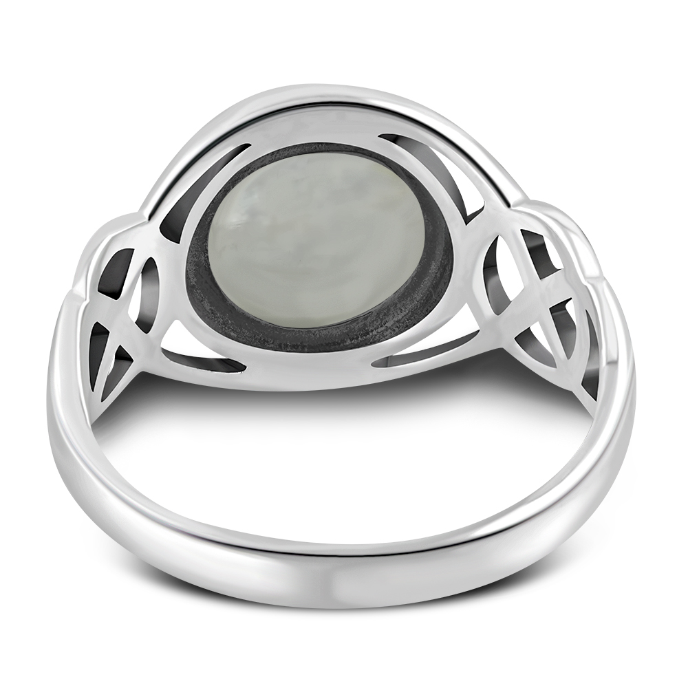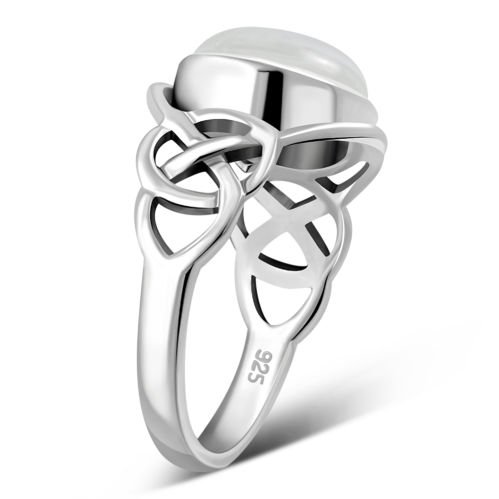 Rainbow Moonstone Celtic Knot Silver Ring