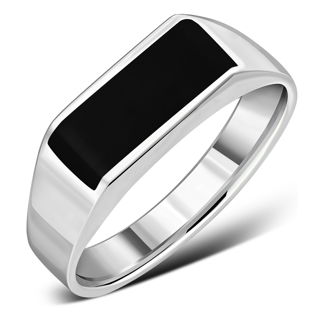 Simple Black Onyx Solid Sterling Silver Ring, r007