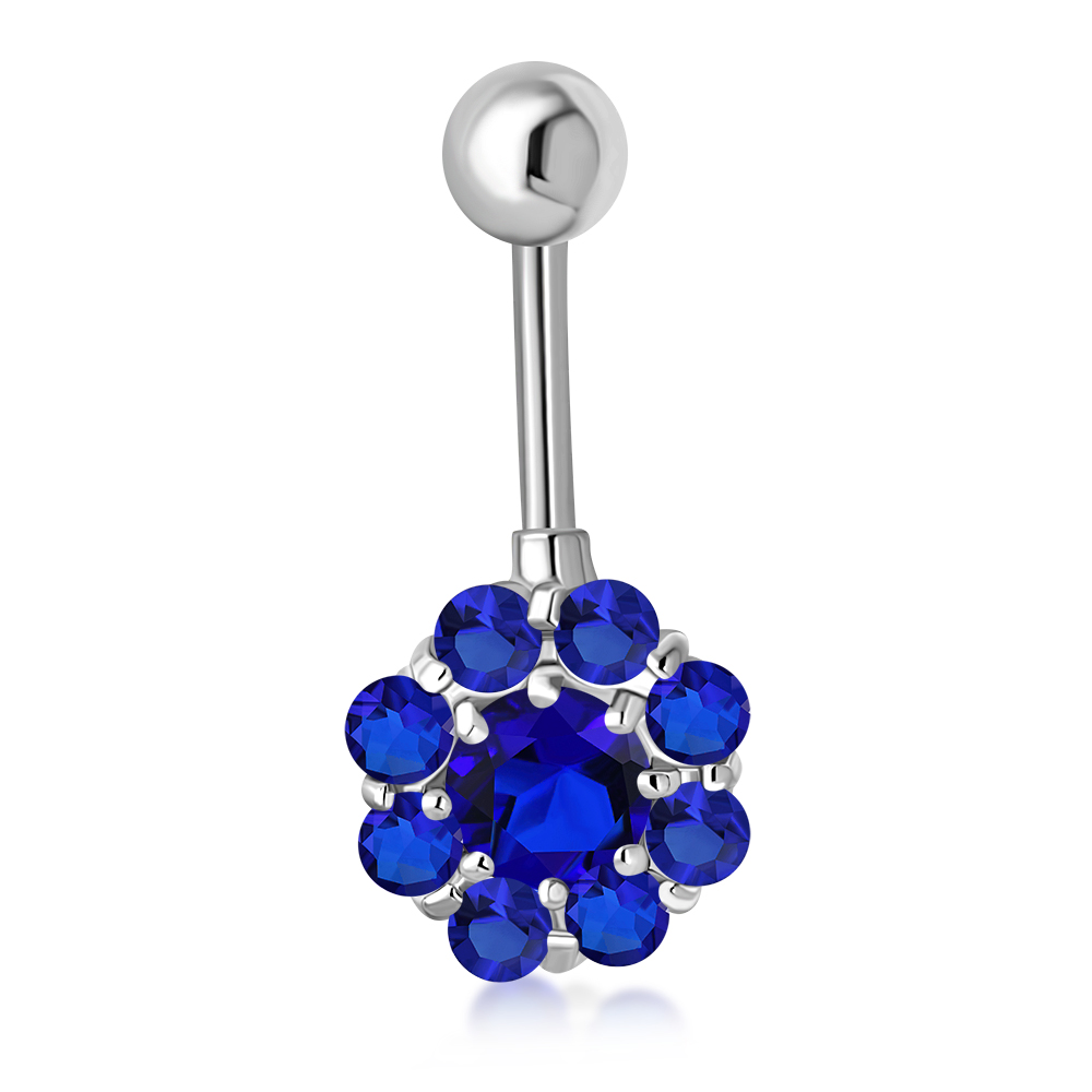 Theme: Blue Sapphire CZ Round Victorian Style Silver Navel Ring.