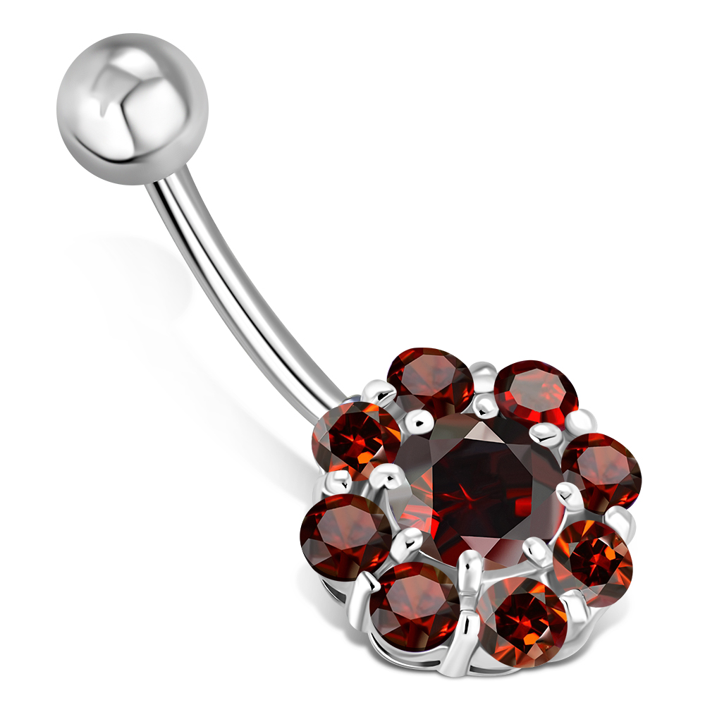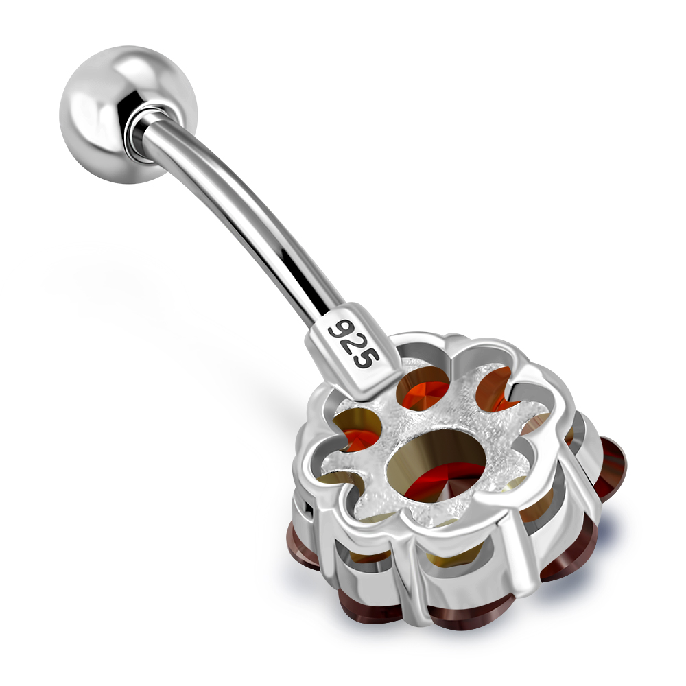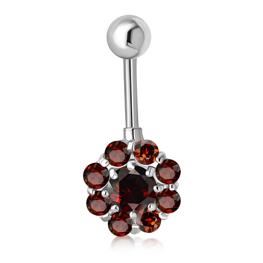 Theme: Garnet CZ Round Victorian Style Silver Belly Ring.