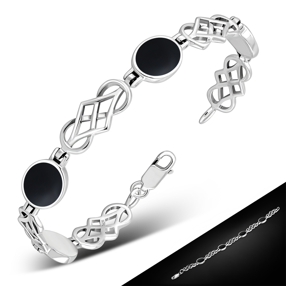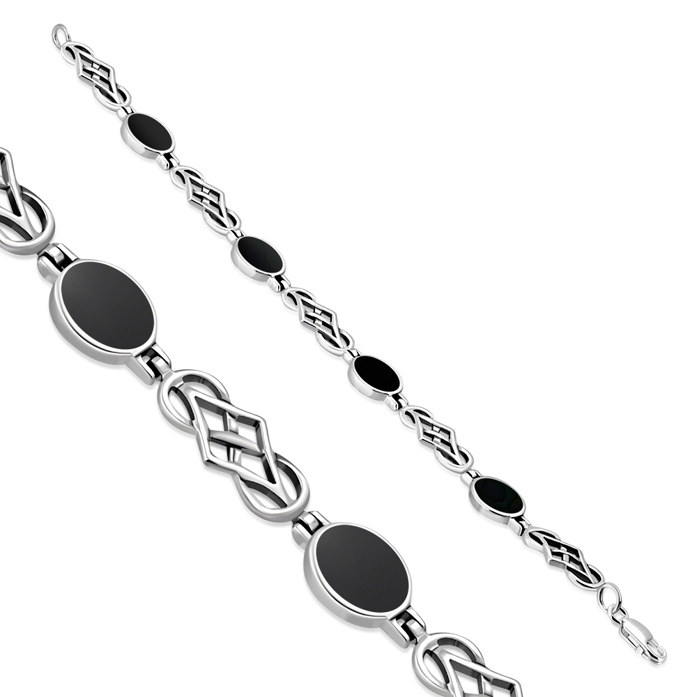 Theme: Black Onyx Oval Links Celtic Knot Silver Bracelets