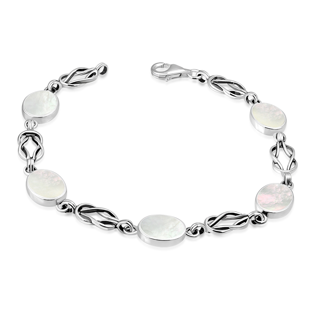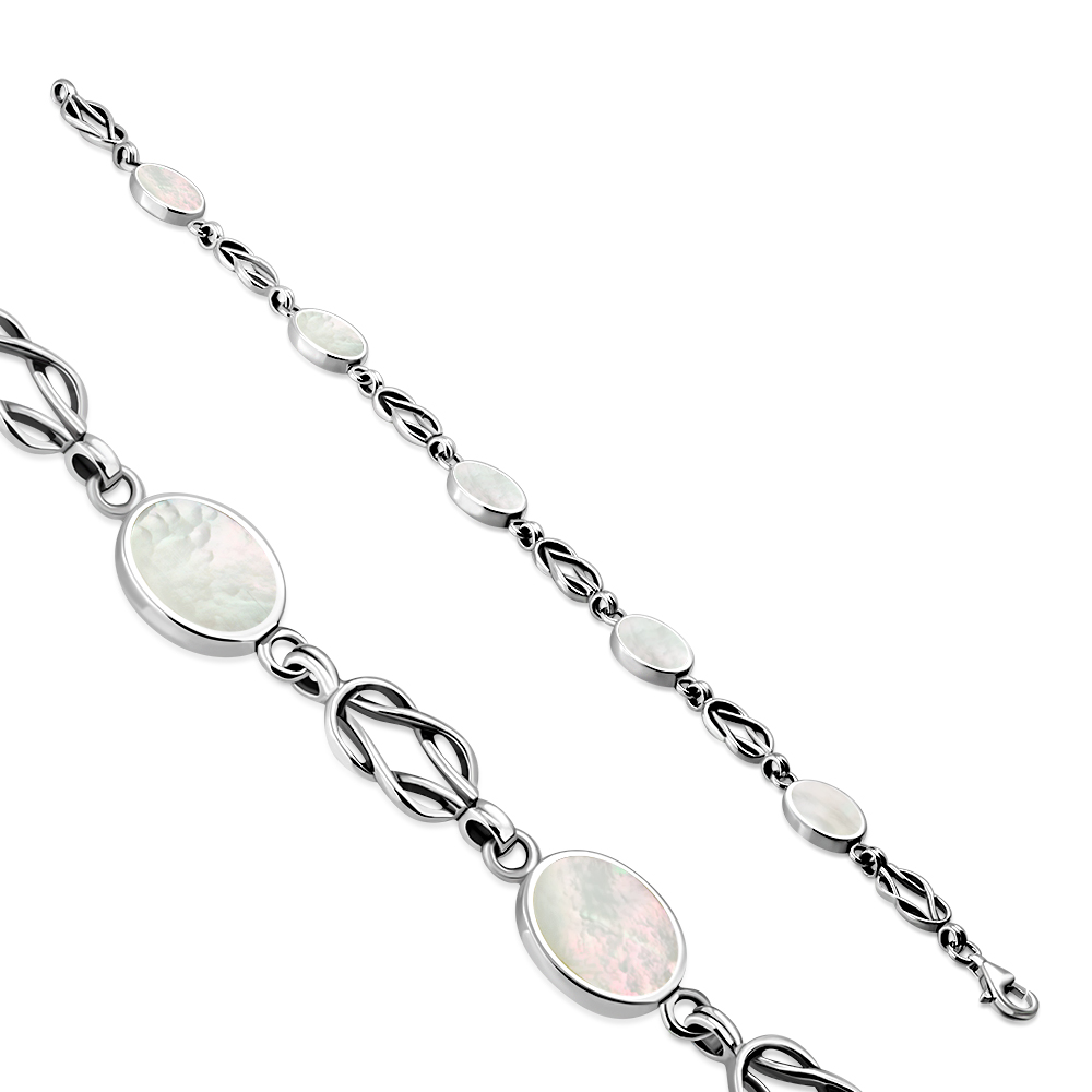 Theme: Mother Of Pearl Oval Links Celtic Knot Silver Bracelets