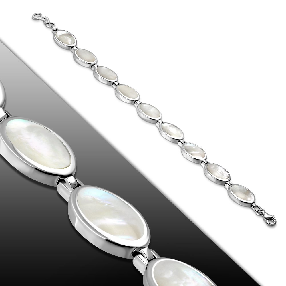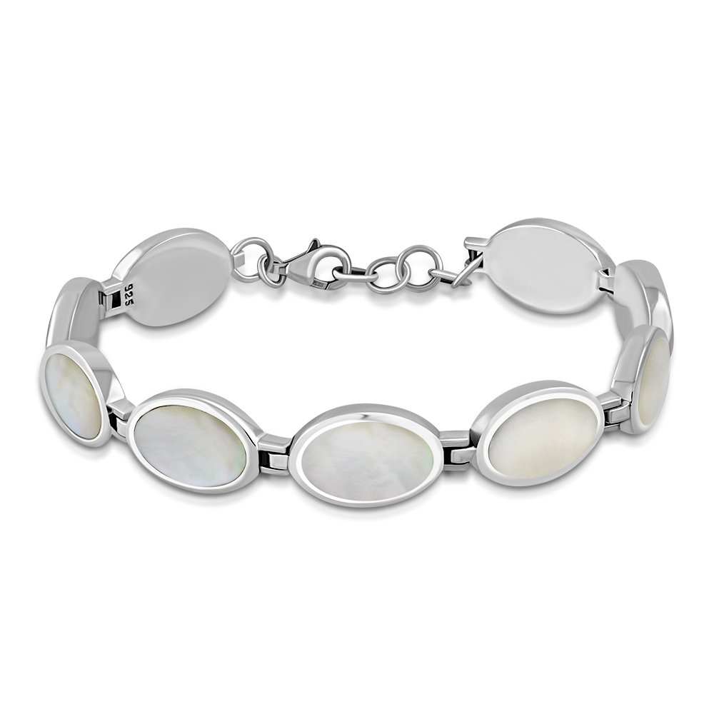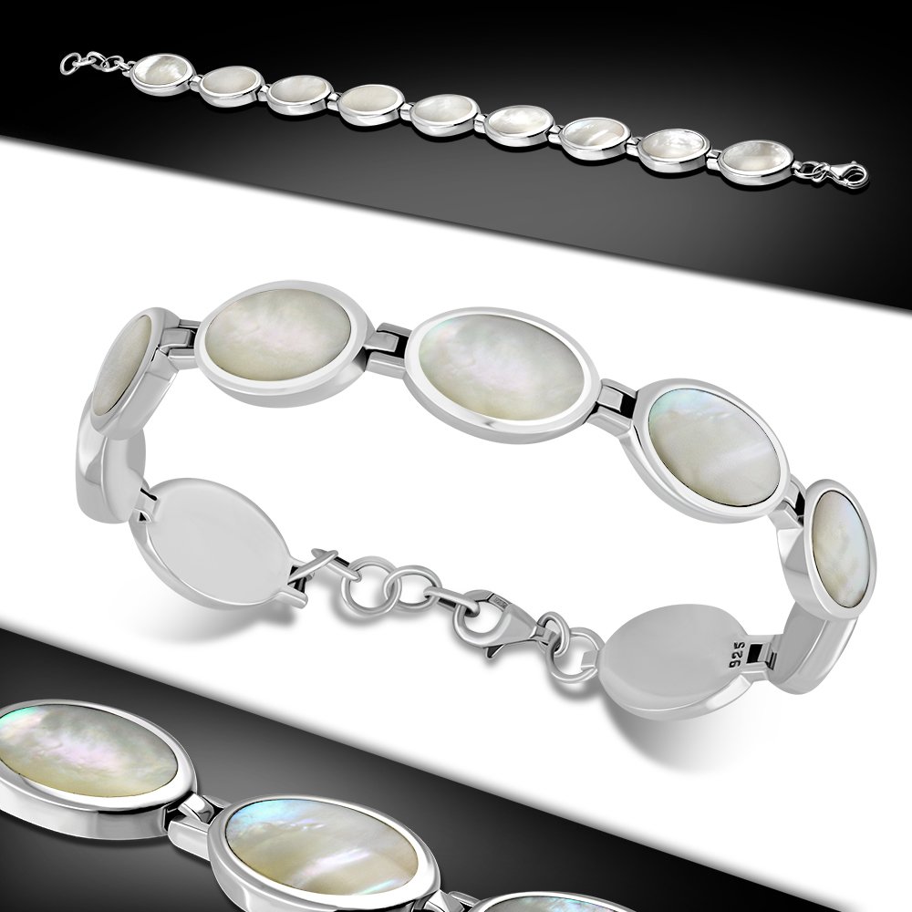 Theme: Mother of Pearl Oval links Sterling Silver Bracelet.
