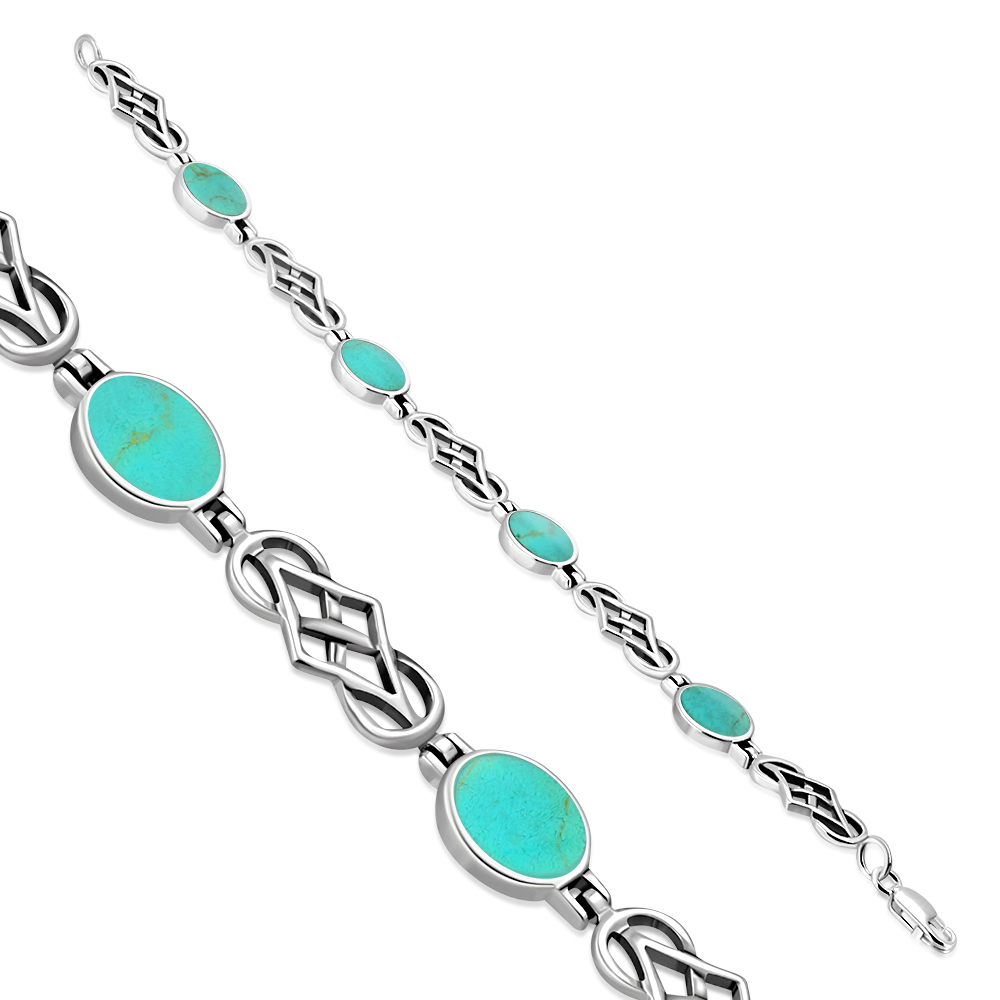 Theme: Turquoise Oval Links Celtic Knot Silver Bracelets