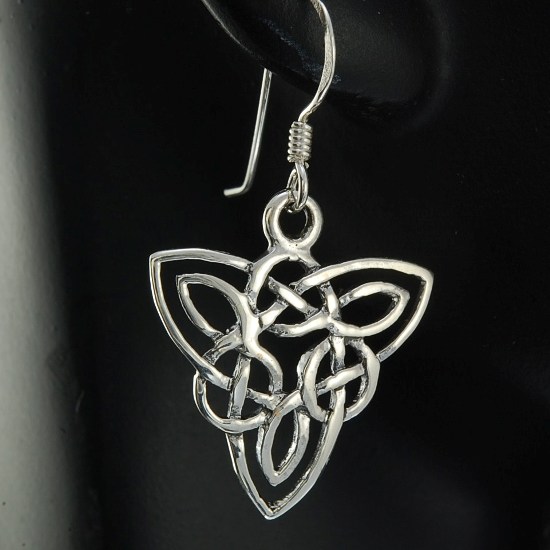 Plain Silver Celtic Trinity Jewelry, Plain Celtic Knot Trinity Earrings, Plain