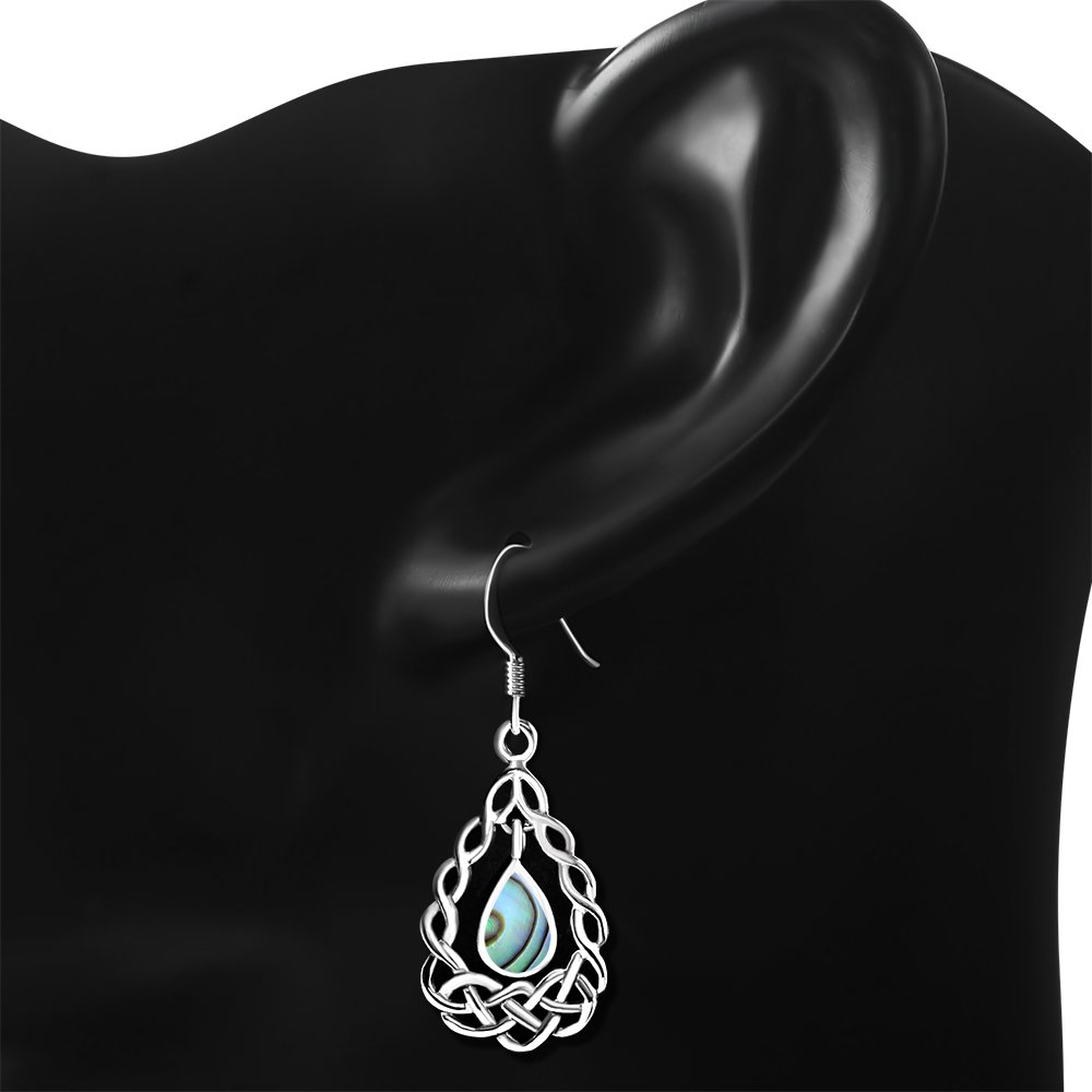 Abalone Shell Drop Silver Celtic Knot Earrings