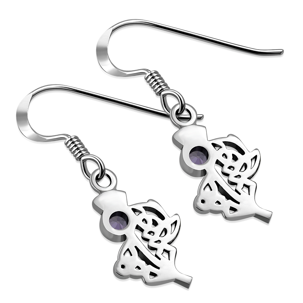 Thistle Silver Earrings w Amethyst Stone.