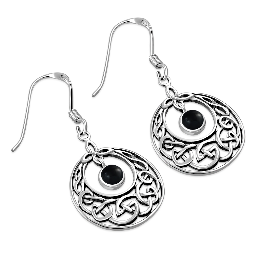 Theme: Black Onyx Celtic Knot Silver Earrings.