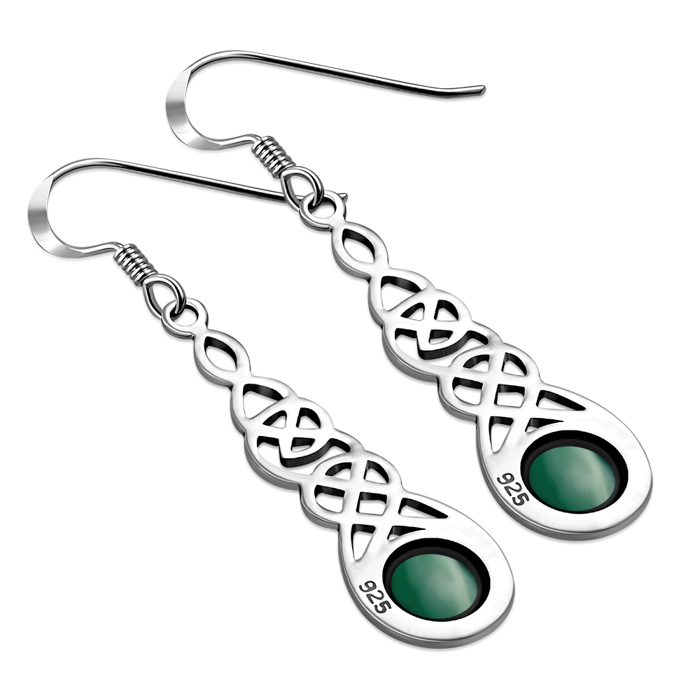 Green Agate Celtic Silver Long Drop Dangle Hook Earrings