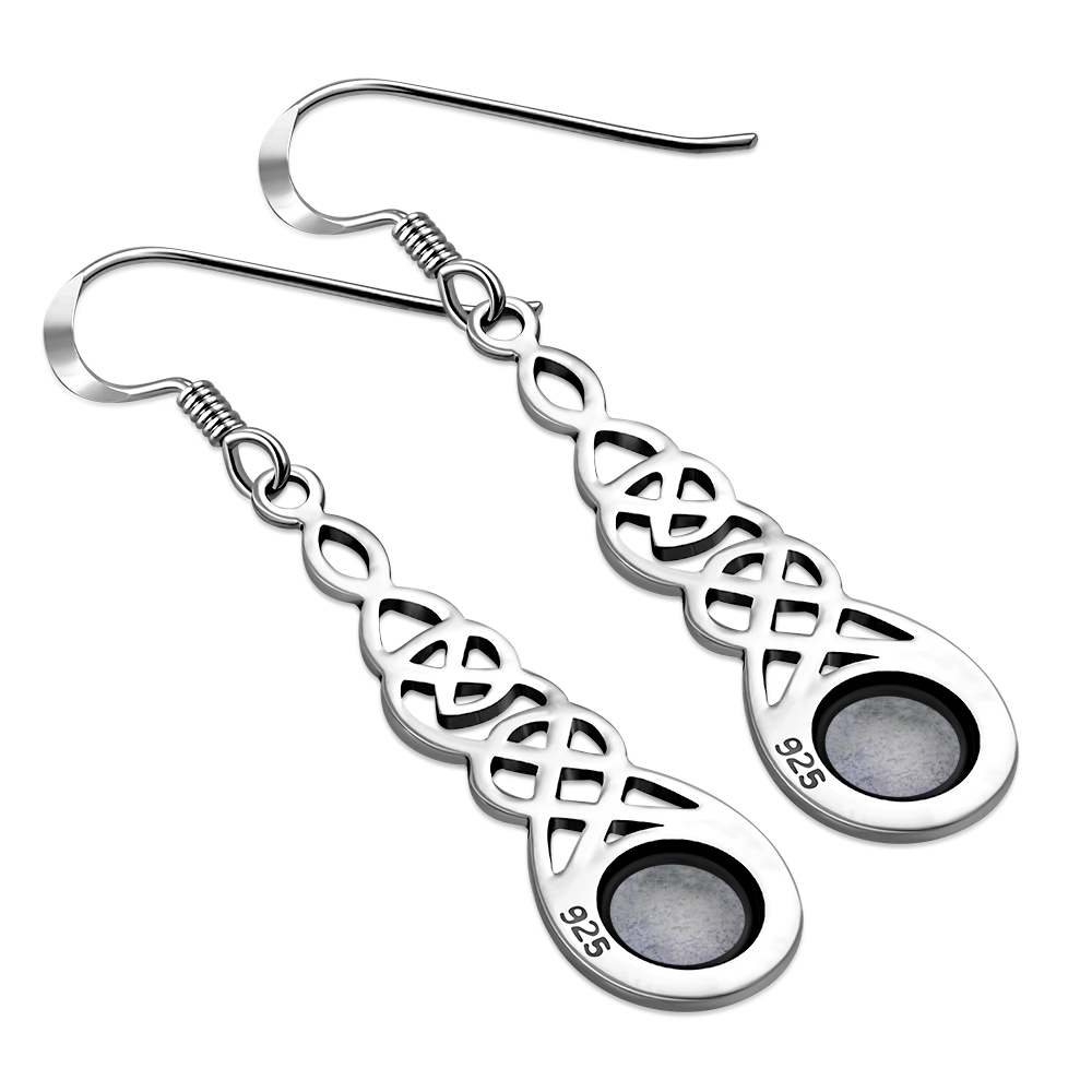 Labradorite Celtic Silver Long Drop Dangle Hook Earrings